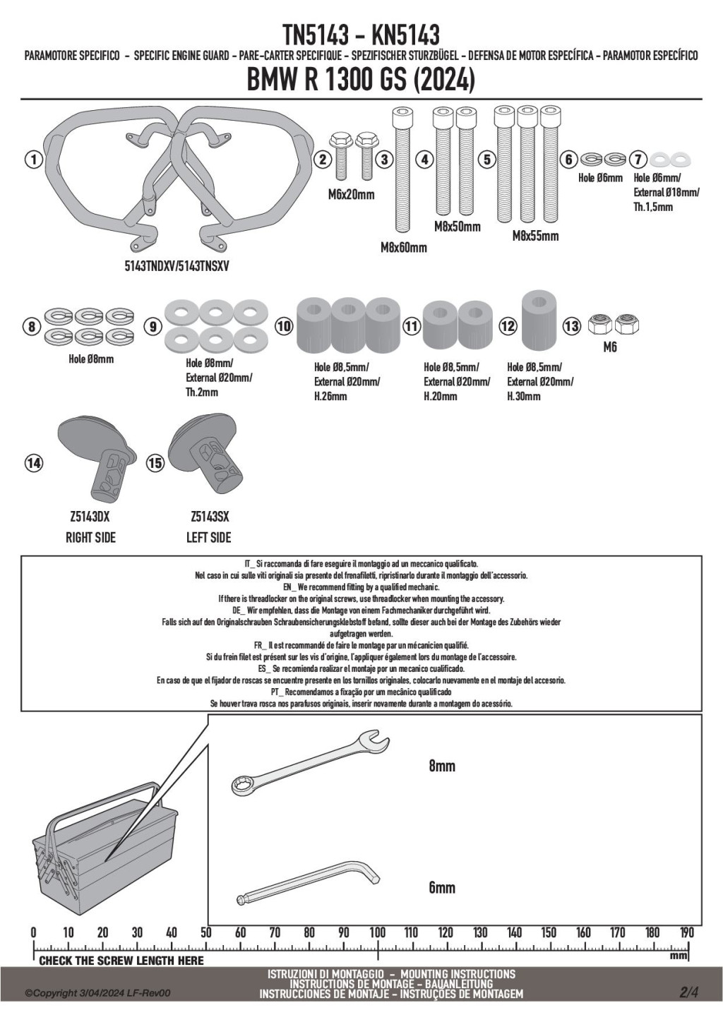 A bukócső kifejezetten a BMW R 1300 GS (2024-2026) motorkerékpárhoz készült, így stílusban illeszkedik a vázhoz és az oldalsó elemekhez.
