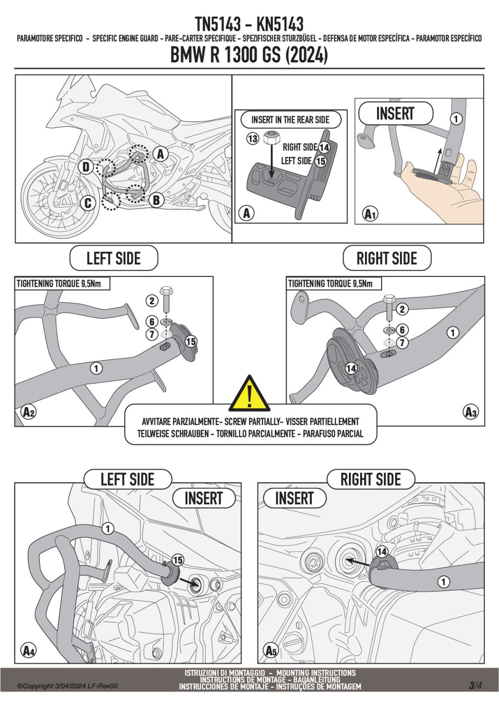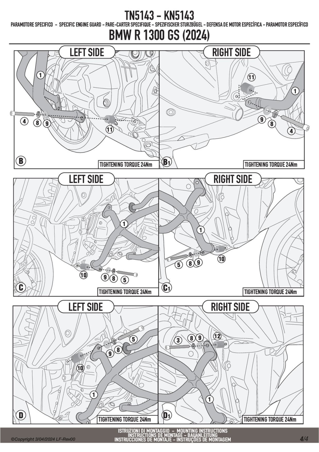A GIVI TN5143 egy erős, fekete acél bukócső, kifejezetten a BMW R 1300 GS (2024-2025) motorkerékpárokhoz.