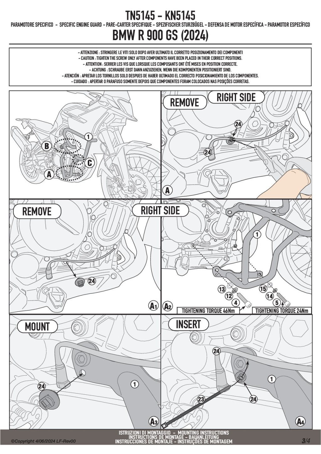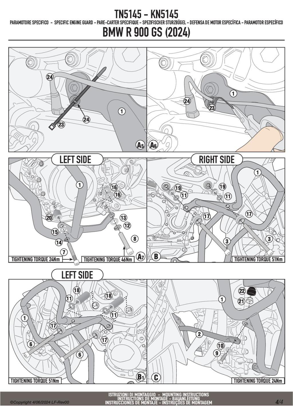 A GIVI TN5145 egy erős, fekete acél bukócső, kifejezetten a BMW R 1300 GS (2024-205) motorkerékpárokhoz.