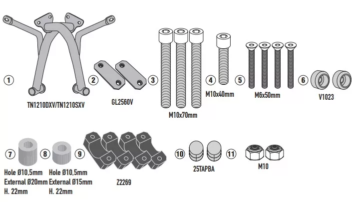 A bukócső célja, hogy még egy oldalra dőlésből vagy sztenderről történő leesés esetén is minimalizálja a sérüléseket, ezáltal megóvja a motor azon alkatrészeit, amelyek nem javíthatók vagy cserélhetők könnyen . A GIVI hosszú tapasztalata és magas minőségi követelménye garantálja az felhasznált anyagok fokozott ellenállását és időtállóságát.