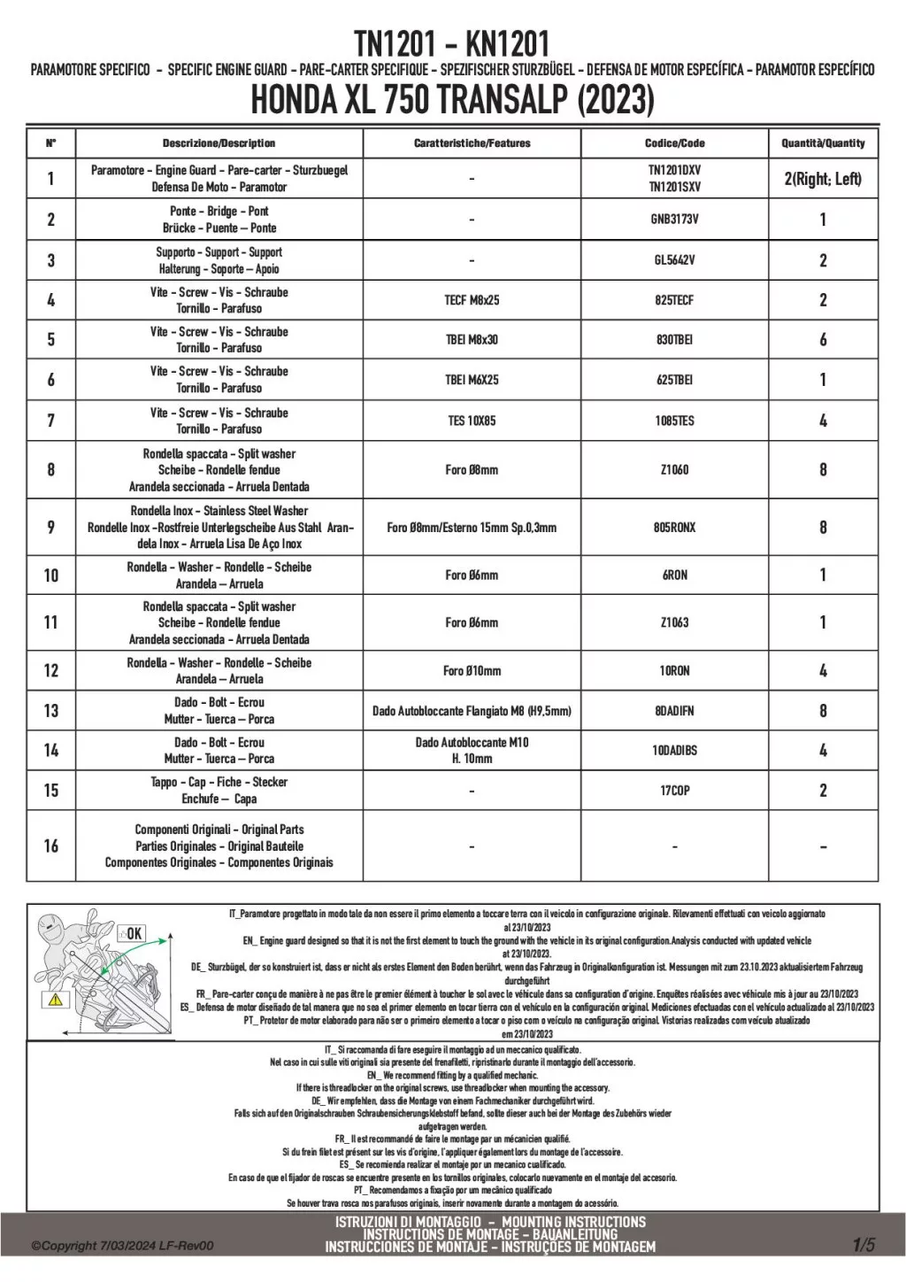 A bukócső kifejezetten a HONDA XL 750 Transalp (2023-2024), HONDA XL 750 Transalp (2025) motorkerékpárhoz készült, így stílusban illeszkedik a vázhoz és az oldalsó elemekhez.