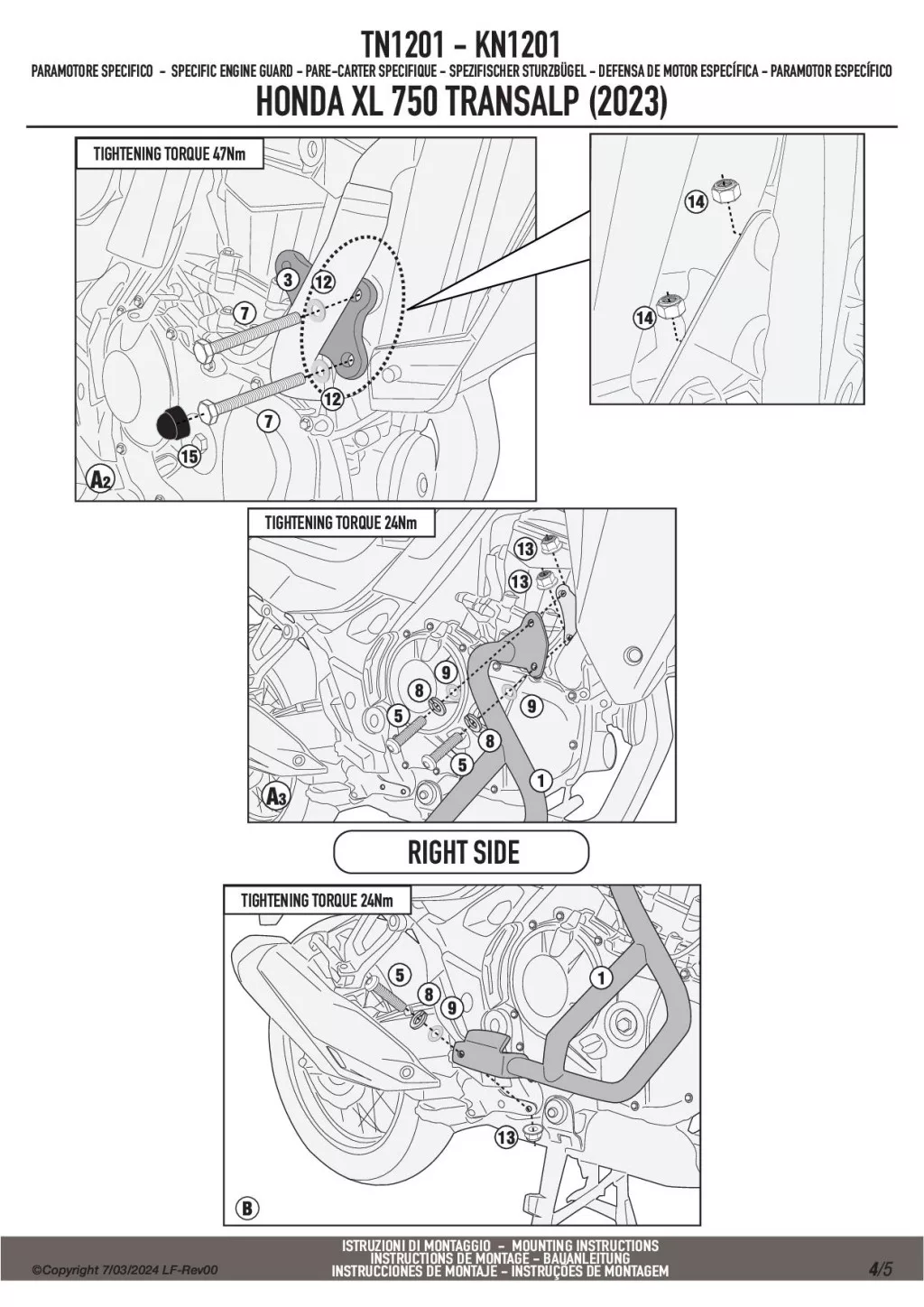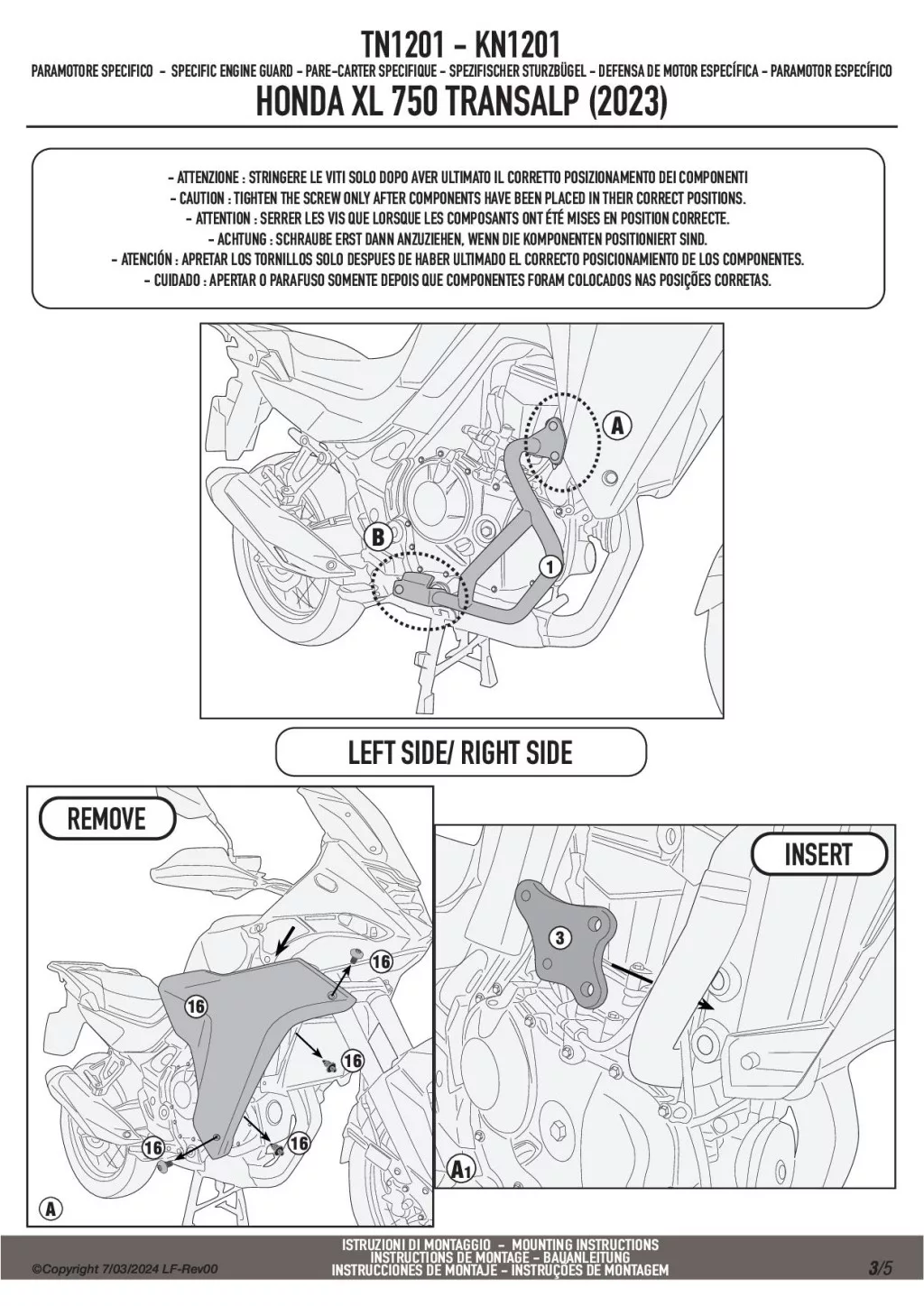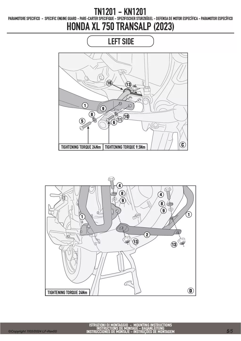 A GIVI TN1201 egy erős, fekete acél bukócső, kifejezetten a HONDA XL 750 Transalp (2023-2024), HONDA XL 750 Transalp (2025) motorkerékpárokhoz.