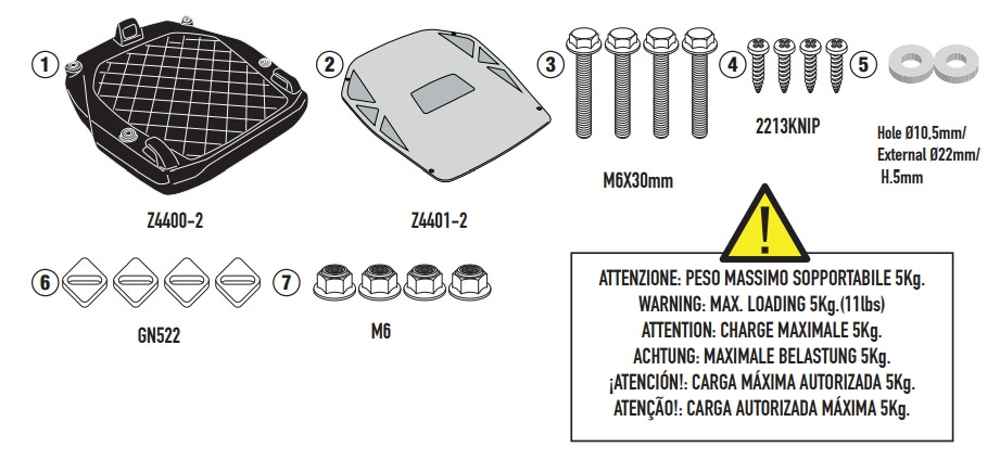 A felszereléshez szükséges, hogy a motoron fent legyen a gyári hátsó csomagtartó.