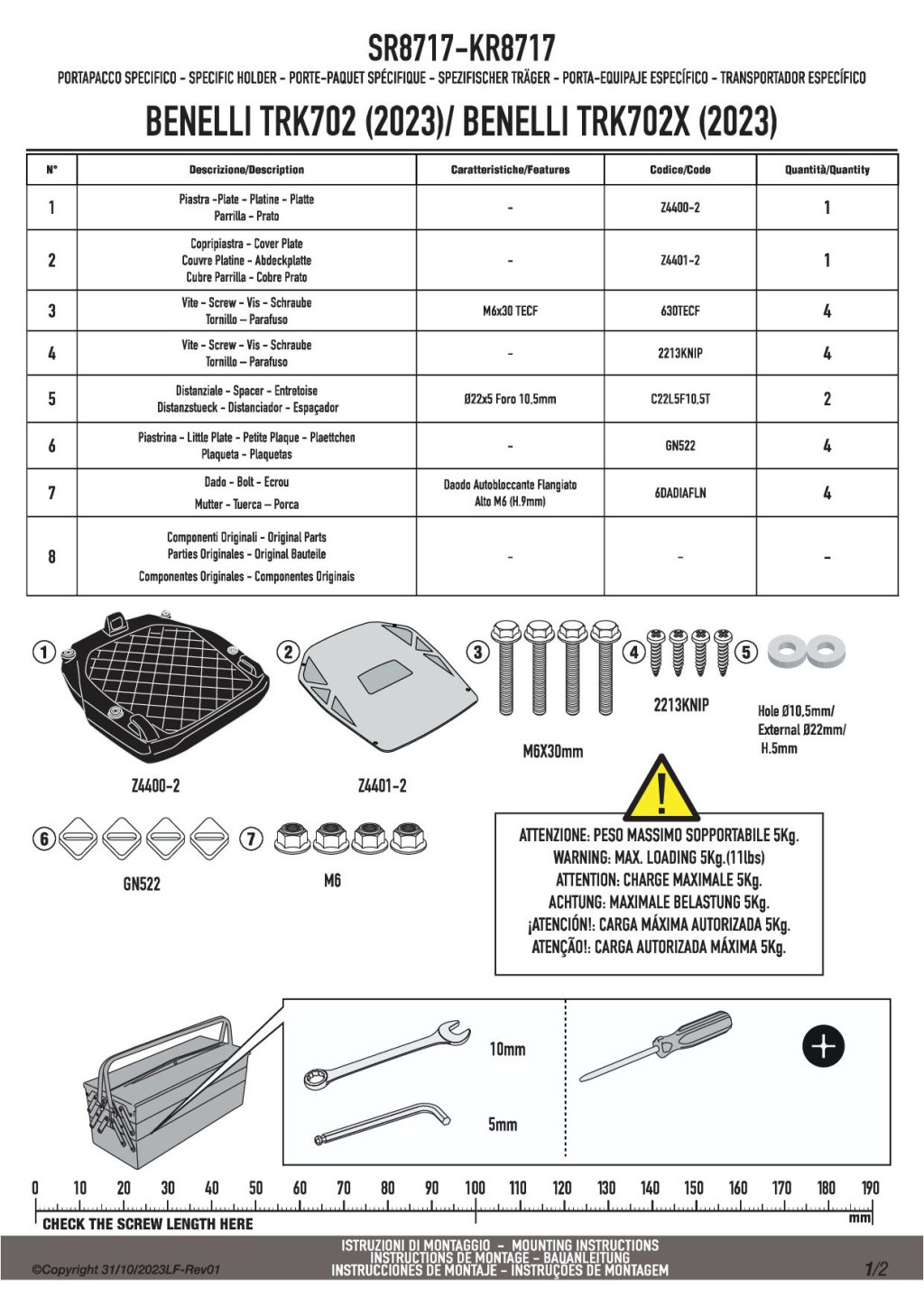 A GIVI SR8717  egy erős, 3–5 mm acélból készült, porfestett fekete csomagtartó, amely megfelelő