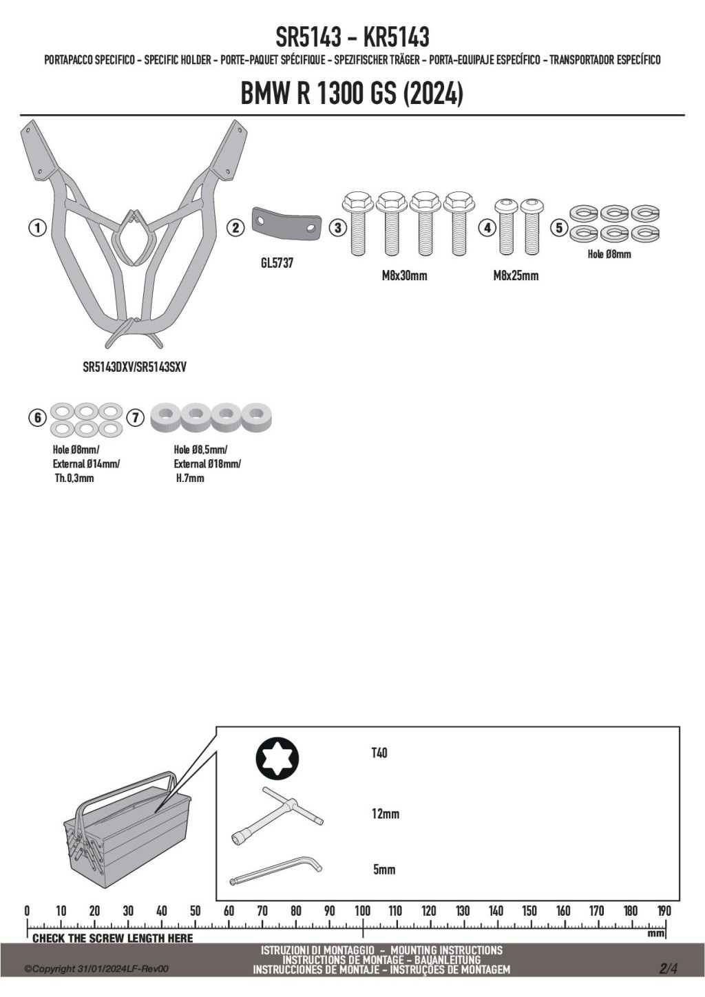 A GIVI SR5143 egy erős, 3–5 mm acélból készült, porfestett fekete csomagtartó, amely megfelelő