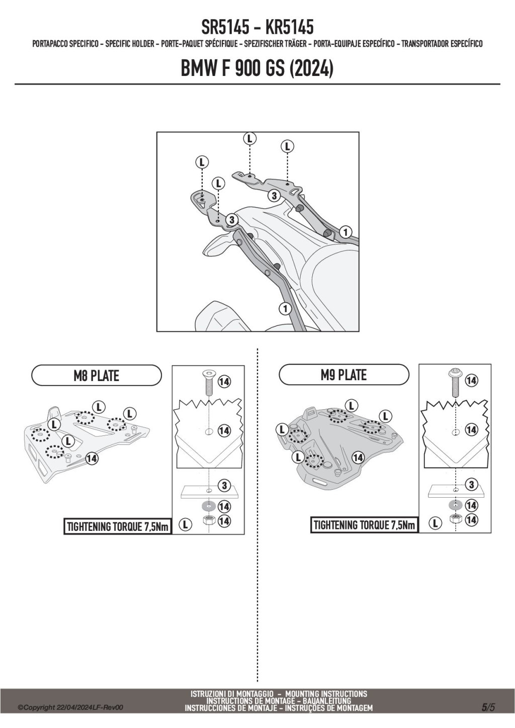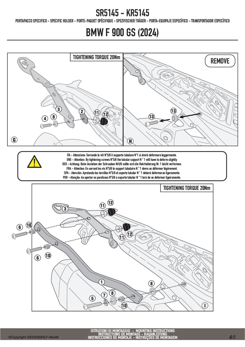 A GIVI SR5145 egy erős, 3–5 mm acélból készült, porfestett fekete csomagtartó, amely megfelelő