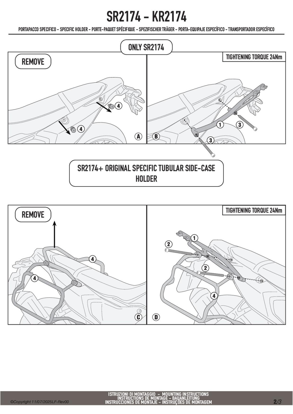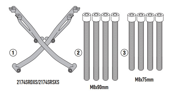 A GIVI SR2174 hátsó csomagtartó konzol a gyári rögzítési pontokra illeszkedve teszi lehetővé Monokey® vagy Monolock® dobozok felszerelését