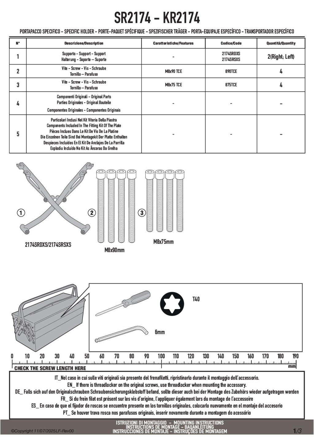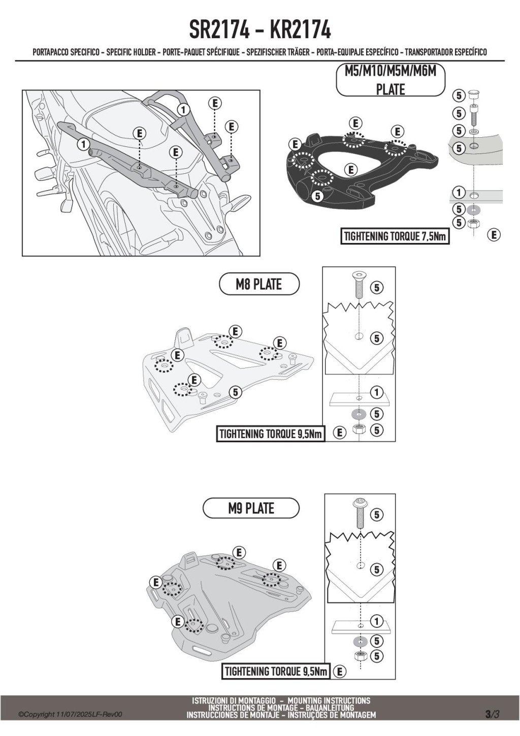 A GIVI SR2174 egy erős, 3–5 mm acélból készült, porfestett fekete csomagtartó, amely megfelelő