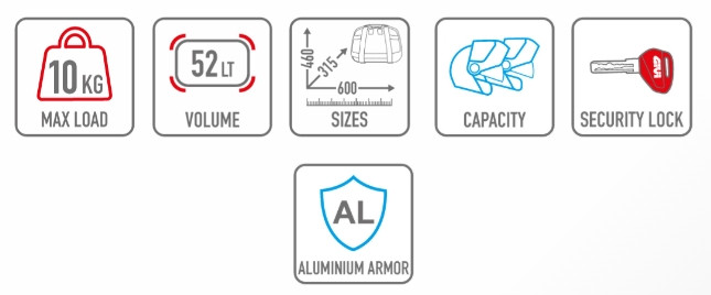 Kapacitása: 52 liter – 2 sisak számára is elegendő