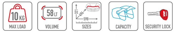A GIVI V58 MAXIA 5 nem csupán tárolókapacitásával, hanem sportosan elegáns formájával, praktikus részleteivel és díjnyertes dizájnjával is kiemelkedik. Ha szeretnéd, hogy motorod egyszerre legyen funkcionális és lenyűgöző megjelenésű, akkor ez a doboz tökéletes választás.