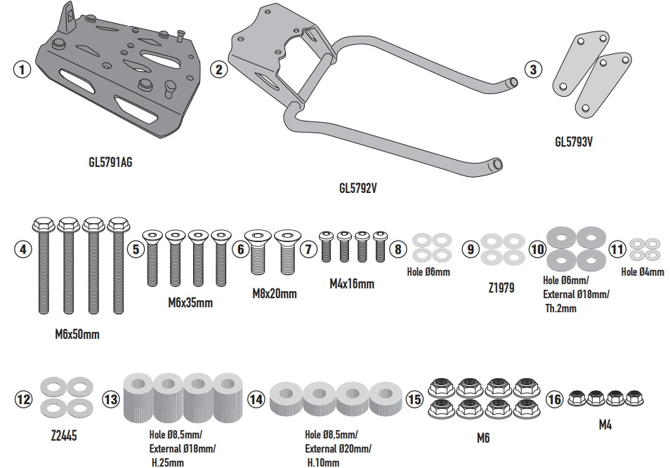 A GIVI hangsúlyozza, hogy az SRA3128 csak gyári alkatrészekkel szerelt motorokon használható. Ha utólagos módosítások — például oldaldoboz tartó felszerelése — történtek, ezek akadályozhatják a szerelést. Ilyen esetekben ajánlott szakemberrel egyeztetni.