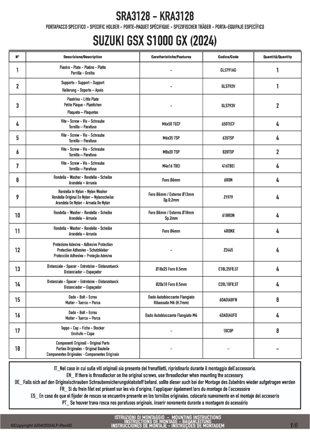 Ha megbízható, sportosan elegáns megoldást keresel a SUZUKI GSX S1000 GX (2024-2025) motorodhoz, akkor a GIVI SRA3128 ideális választás. Robusztus alumínium felépítésével stabilan tartja a hátsó dobozt, könnyen felszerelhető, és tökéletesen illeszkedik a motor formatervezésébe. Ha fontos számodra a praktikusság, biztonság és dizájn, válaszd ezt a GIVI csomagtartót – indíts új kalandokat félelem nélkül, élvezd a szabadságot minden úton!