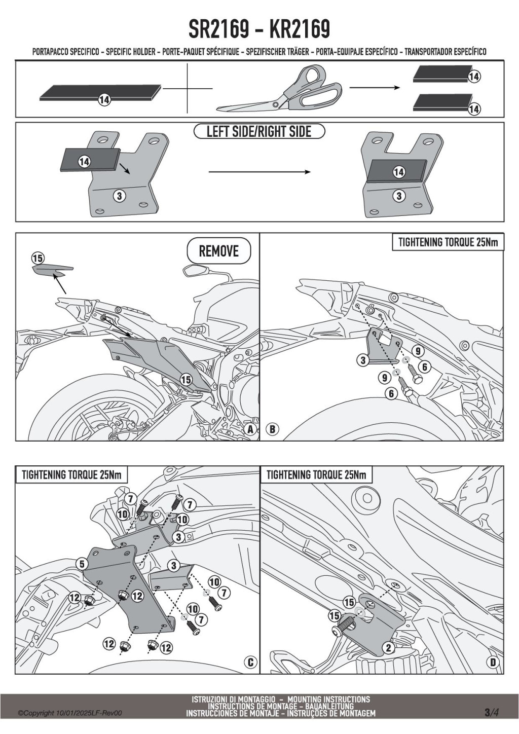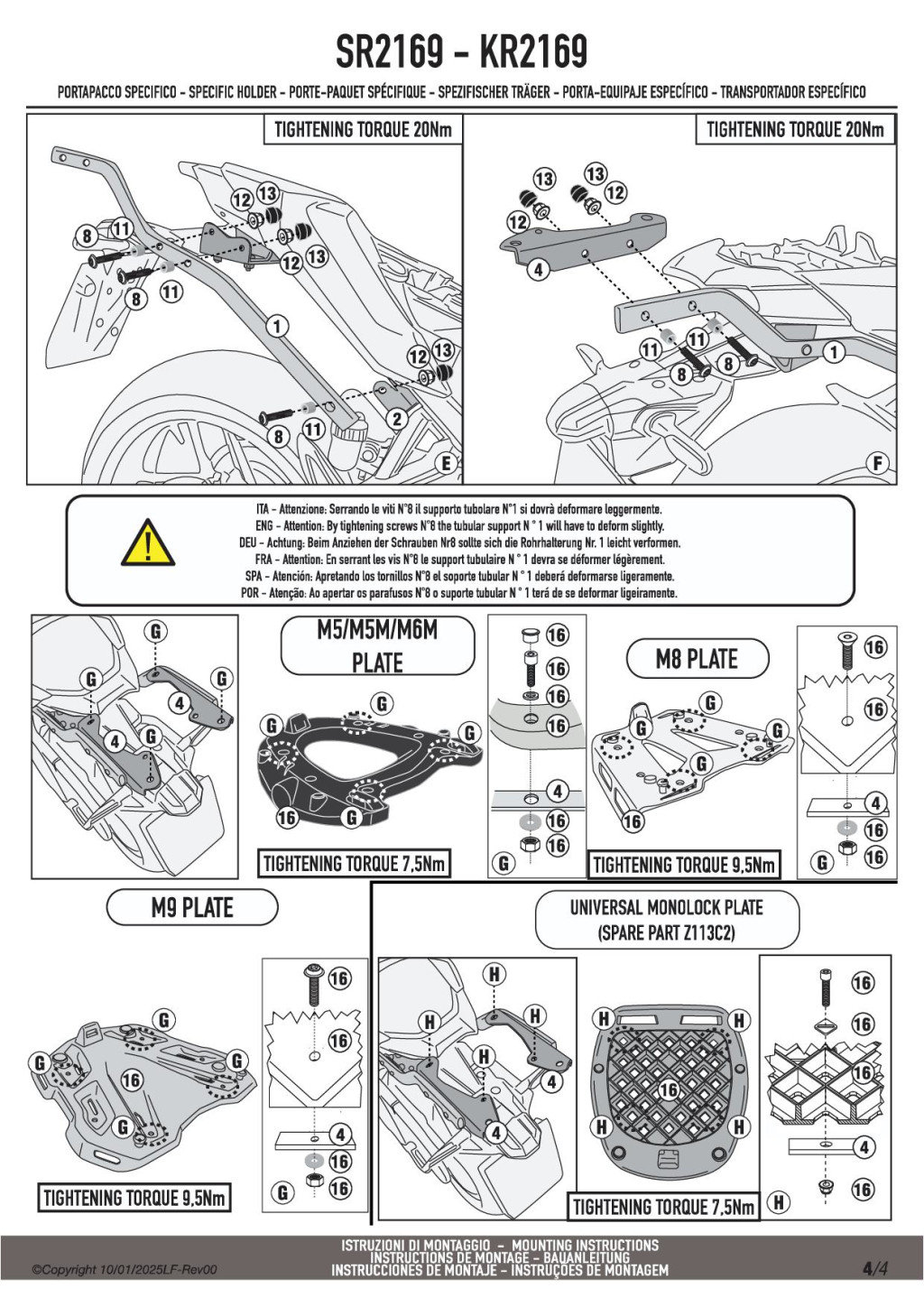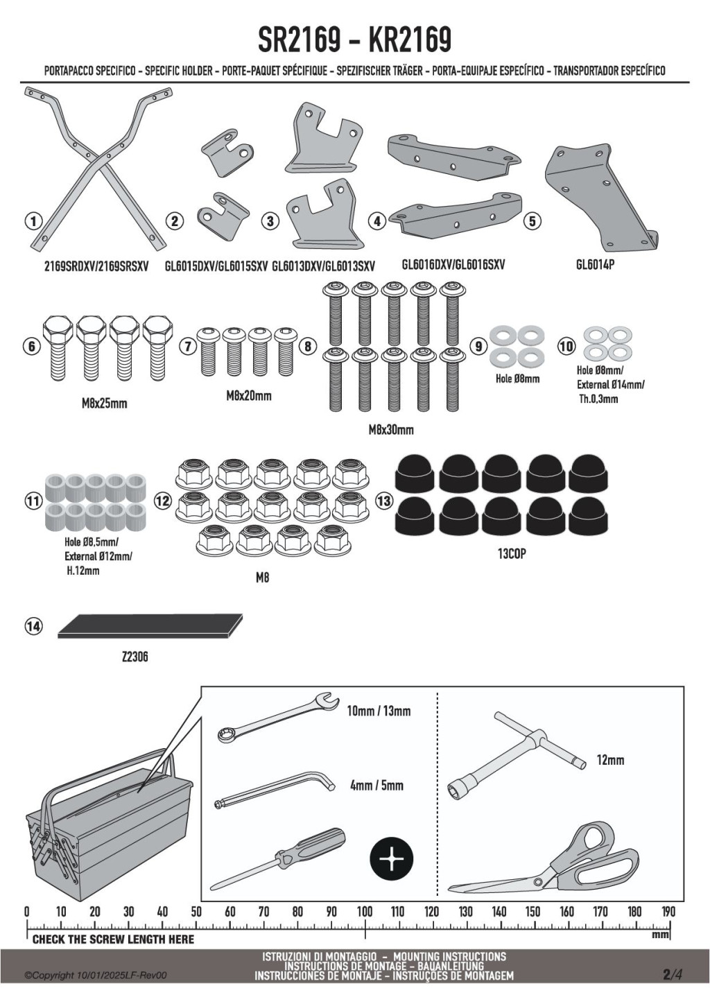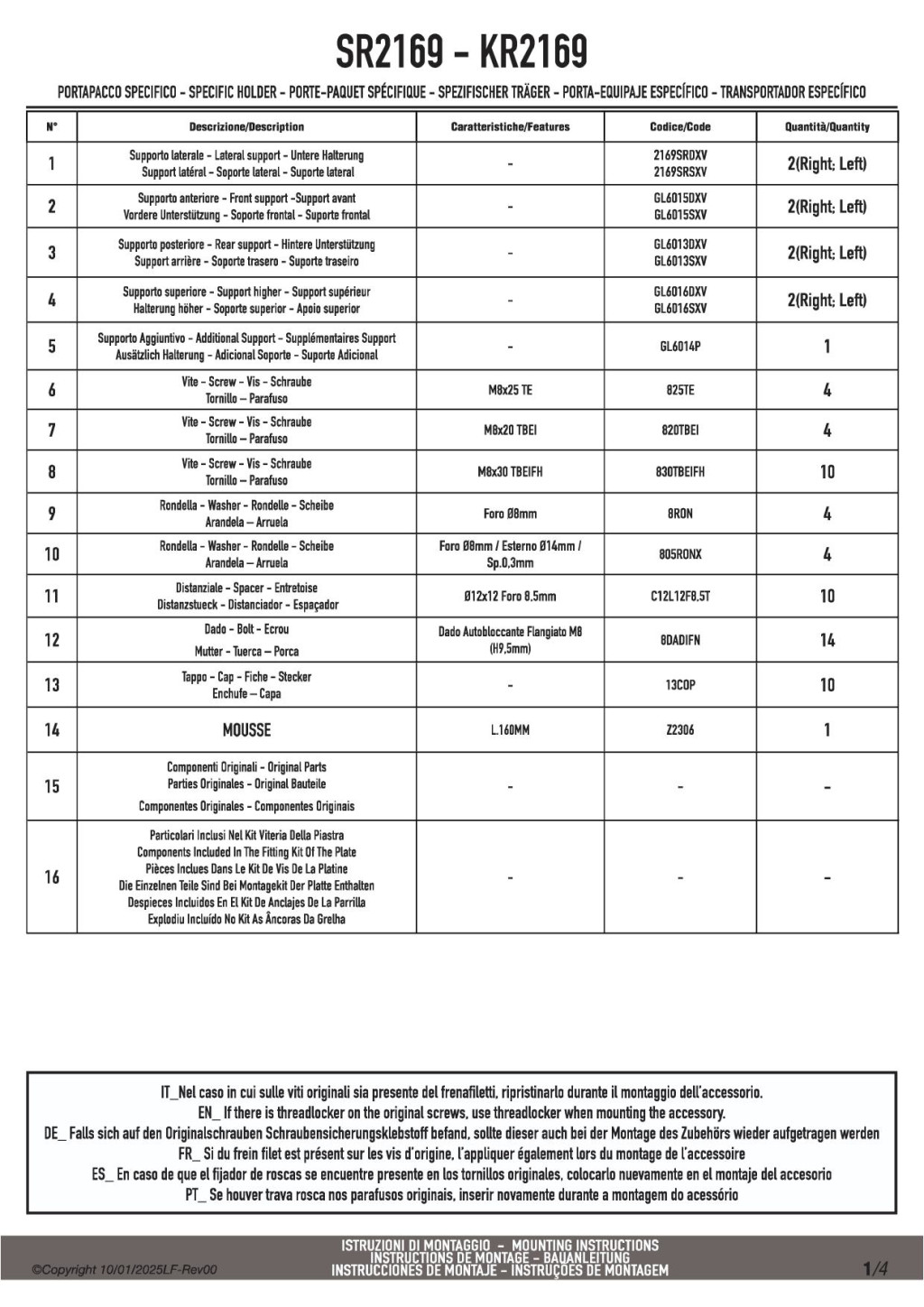 A GIVI SR2169 egy erős, 3–5 mm acélból készült, porfestett fekete csomagtartó, amely megfelelő