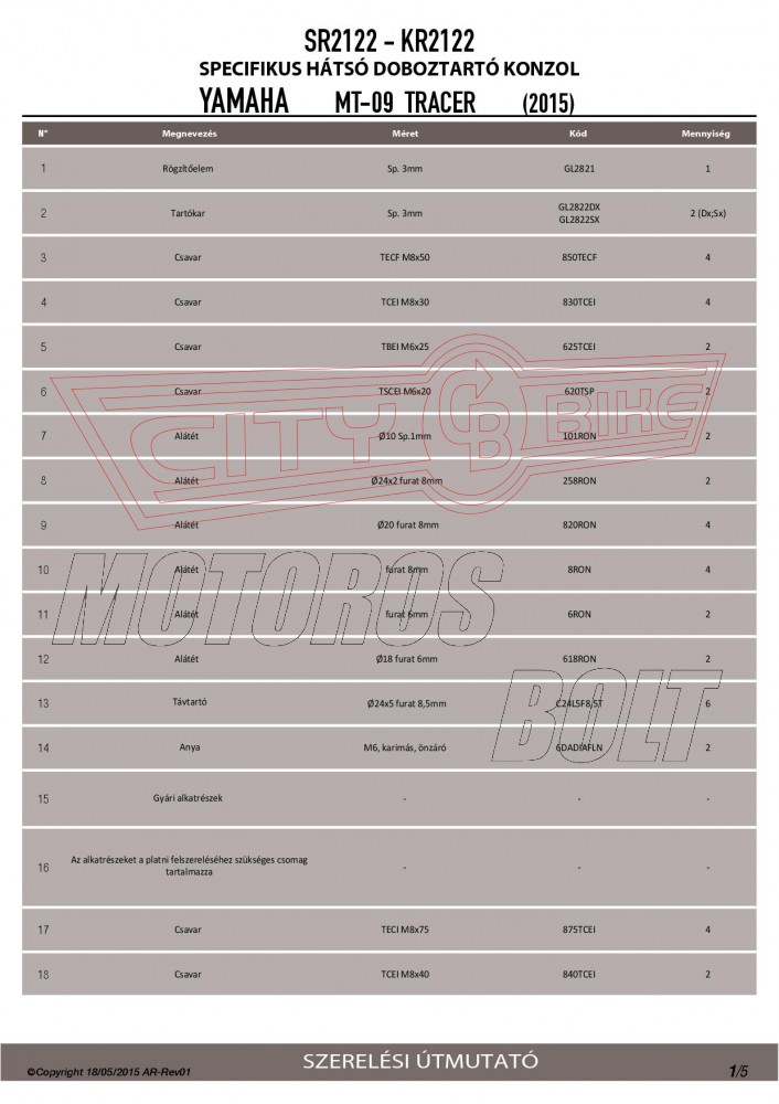 Megfelelő YAMAHA MT-09 TRACER (2015-2017) típusú és évjáratú motorokra.