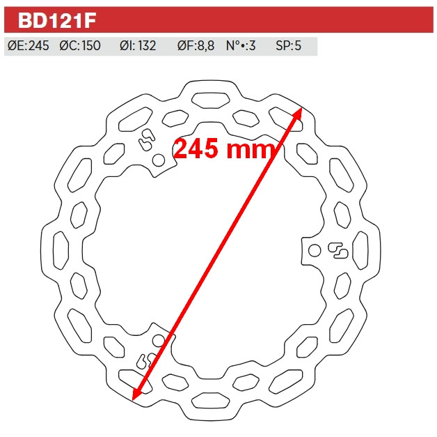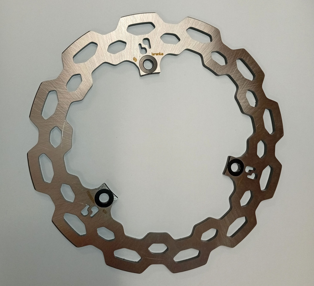 A tárcsa különleges kialakítása (eyelets) segít tisztán tartani a fékbetétet, biztosítva a gyors fékezést bármilyen vezetési körülmény között.