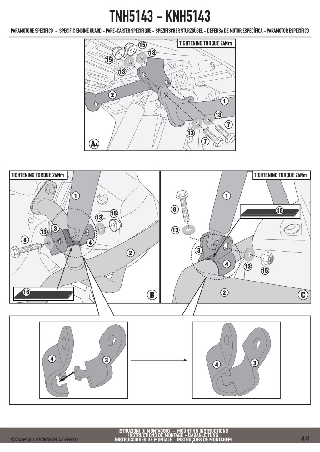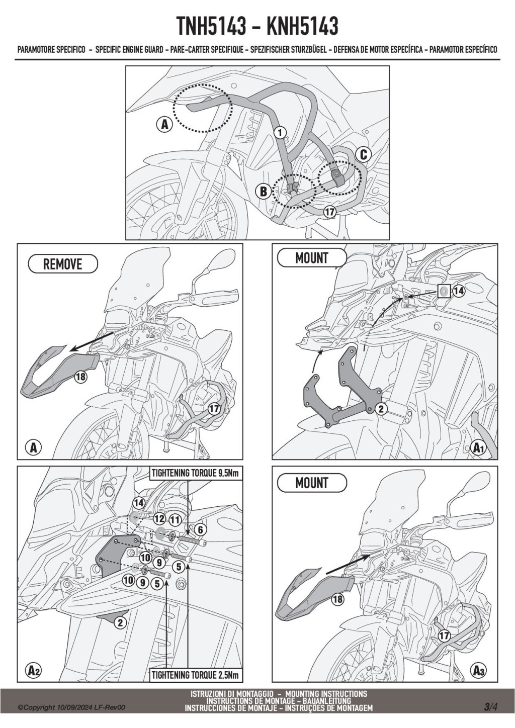 A Givi TNH5143 felső bukócső nem szerelhető fel önmagában, csak ha Givi vagy Kappa alsó bukócső már van felszerelve!