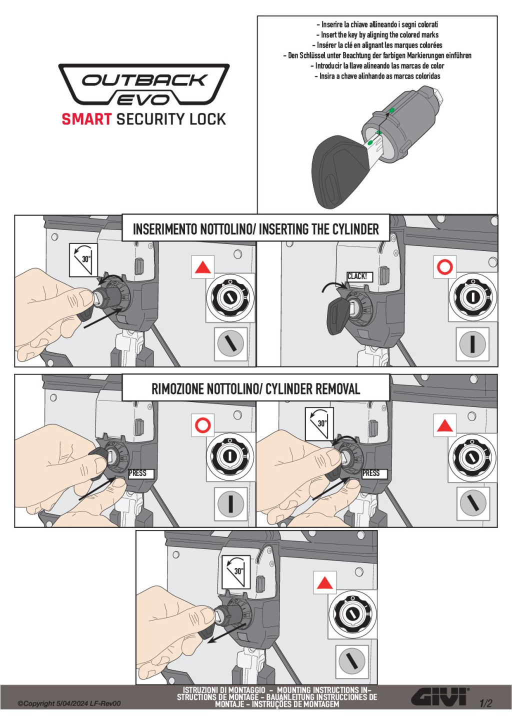 A GIVI SLR102 Smart Security Lock készletet azoknak ajánljuk, akik két Trekker Outback EVO SMART alumínium dobozt (például két oldaldobozt vagy egy hátsó csomagtartó dobozt és egy oldaldobozt) szeretnének egy kulccsal nyitni és zárni. Az új EVO SMART széria minden doboza zár nélkül érkezik, ezért a biztonságos használathoz külön meg kell vásárolni a megfelelő SLR zárkészletet.