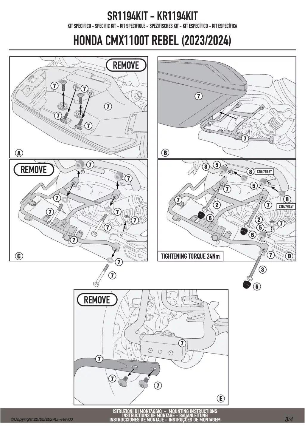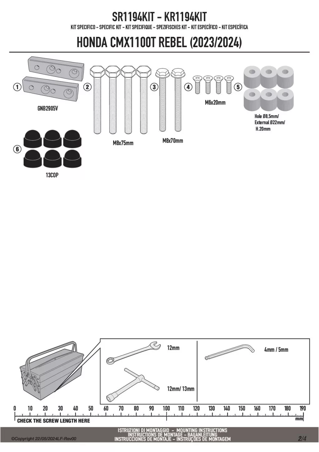 A GIVI SR1194KIT egy speciális szerelőkészlet, amely tökéletesen illeszkedik a Honda CMX 1100 T Rebel (2023–2025) modellhez.