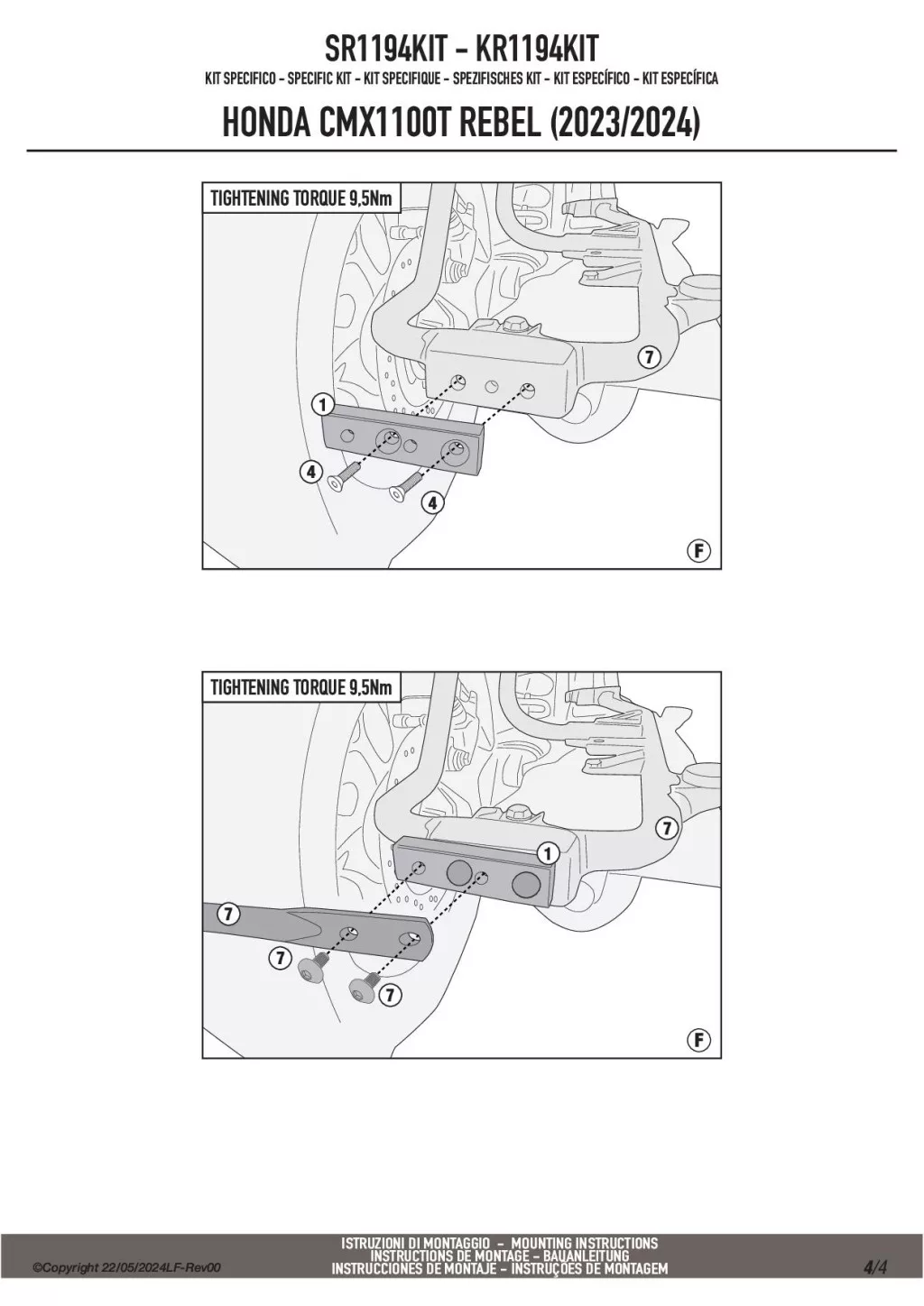GIVI SR1194KIT – Szerelőkészlet Honda CMX 1100 T Rebel (23–25) modellhez
