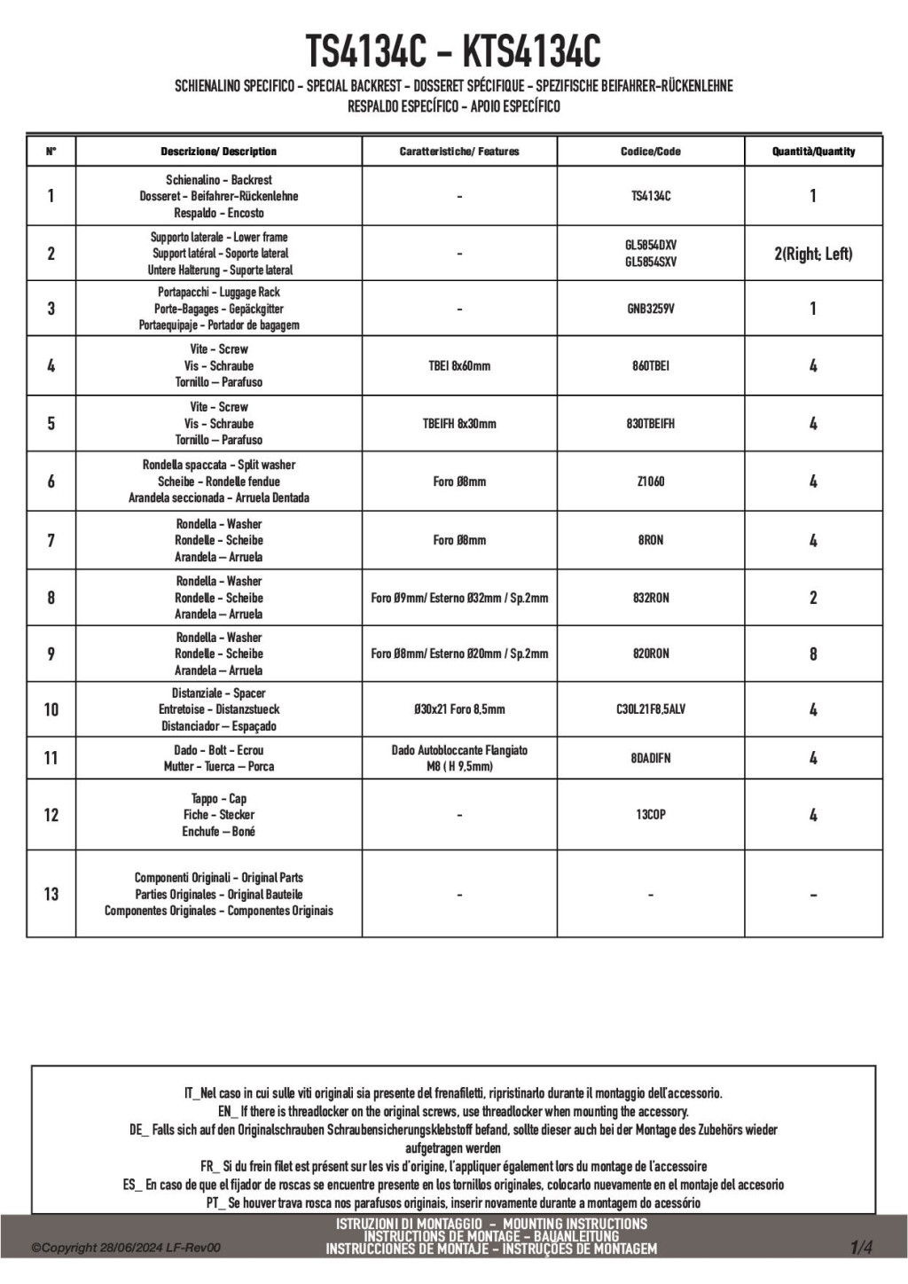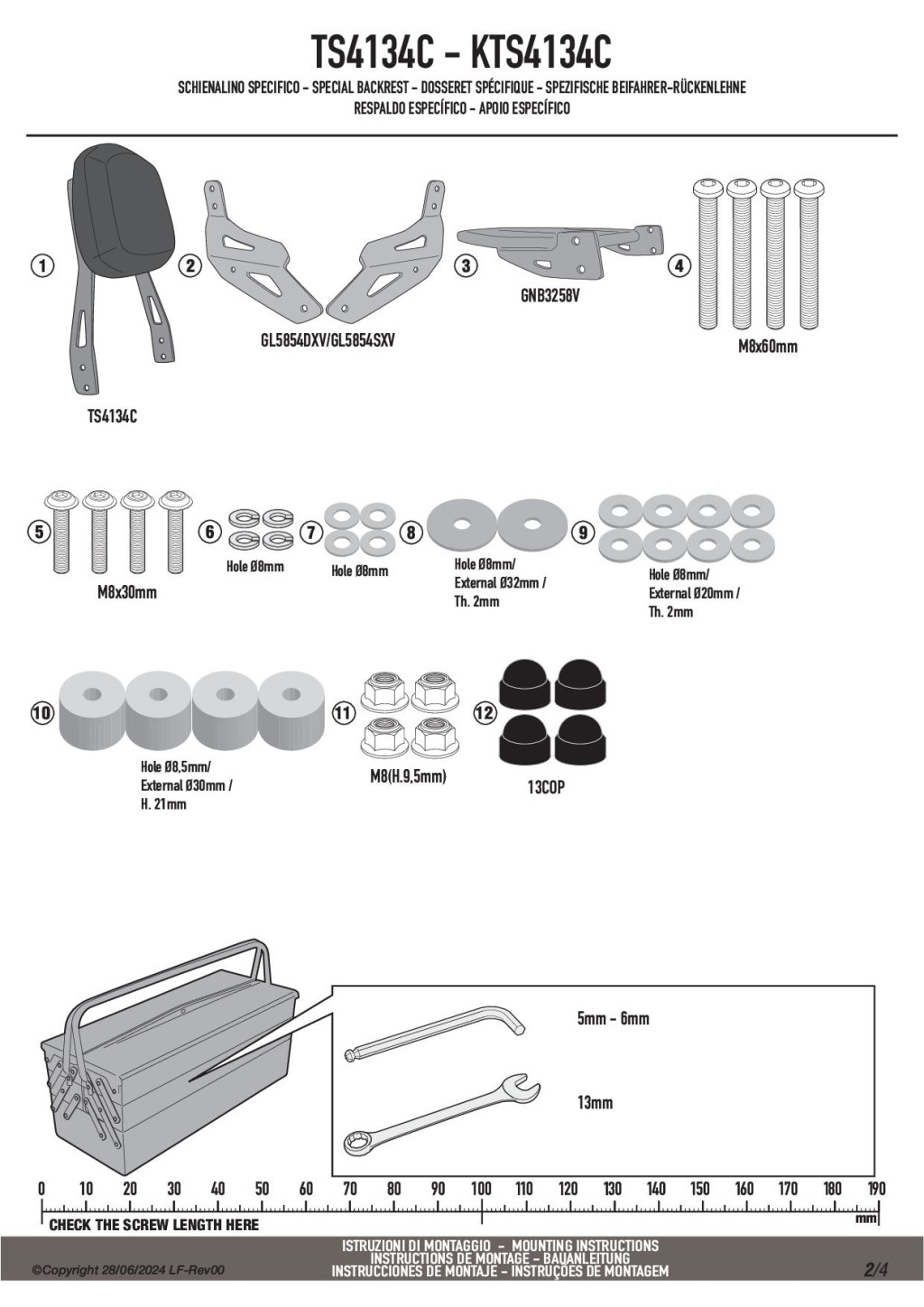 A GIVI előírása szerint: ezek a kiegészítők csak gyári felszereltségű motorokon biztosítanak pontos felszerelést. Ha korábban módosítottál a motor hátulján, ülésén, kapaszkodóján, akkor ilyen esetben javasolt szakszerviz segítsége.