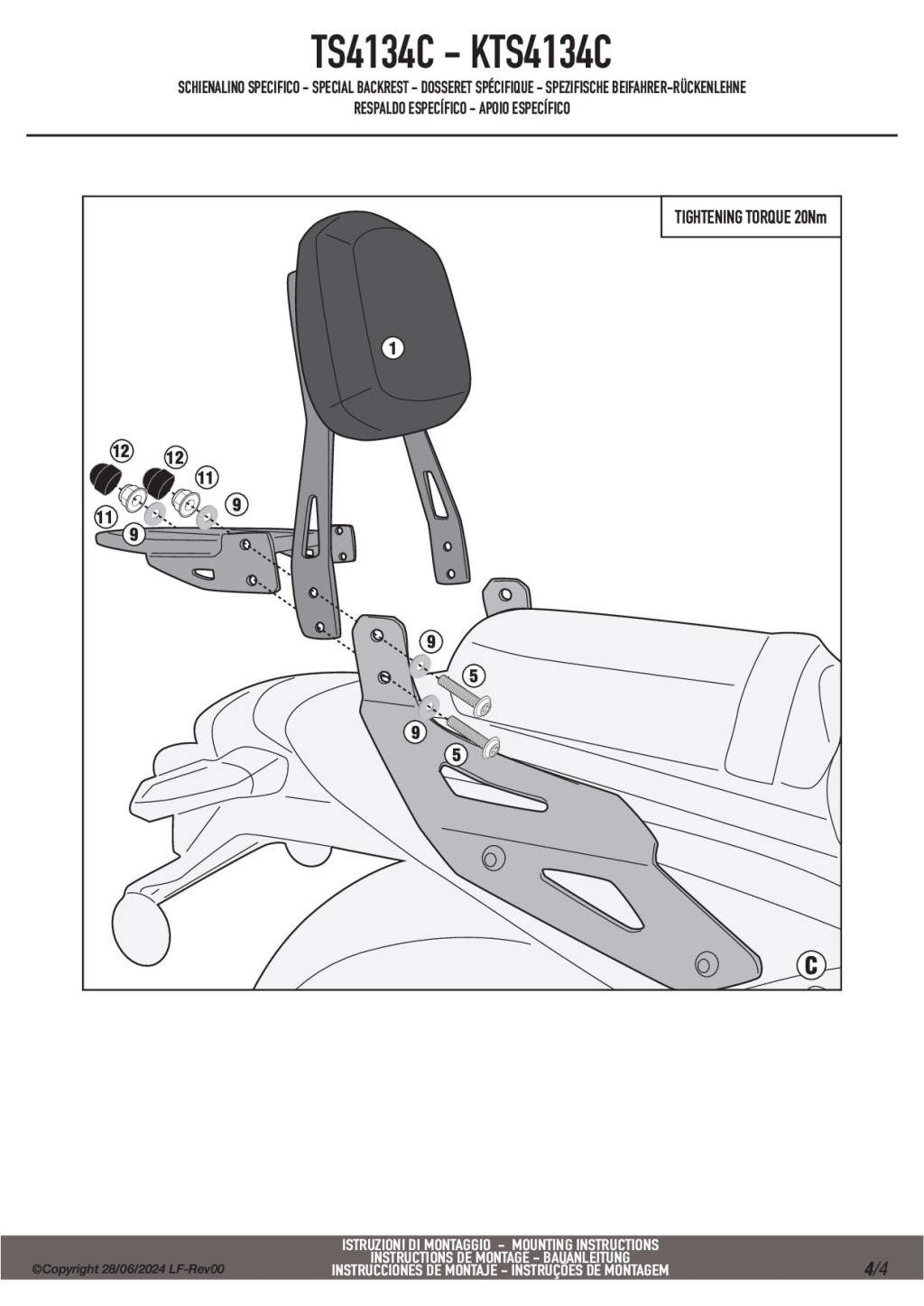 A Givi TS4134C egy gyári teherhordó pontokhoz illeszkedő, masszív acélvázra épülő csomagtartót és puha háttámlát ötvöző kiegészítő, mely tökéletes társad lesz városi használatban és hosszabb túrákon is. A termék fekete, porfestett felülete sportosan elegáns, a háttámla kiváló minőségű habbal párnázott és strapabíró vinil borítású, ami kényelmet biztosít az utasodnak.