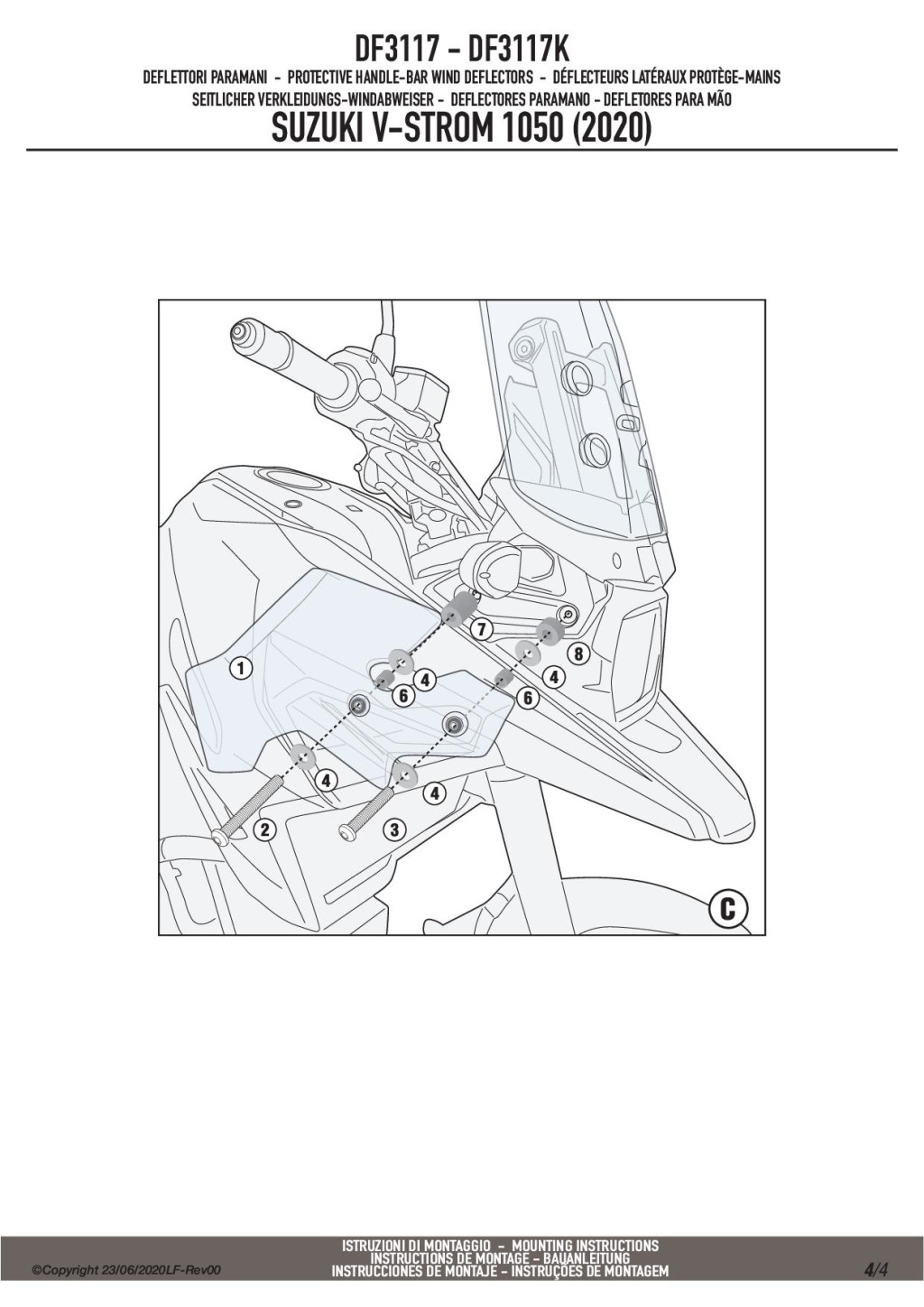 GIVI DF3117 szélterelő Suzuki V-Strom 1050-hez – csökkenti a huzatot, védi kezeid rovaroktól, kényelmesebb, biztonságosabb motorozást nyújt.
