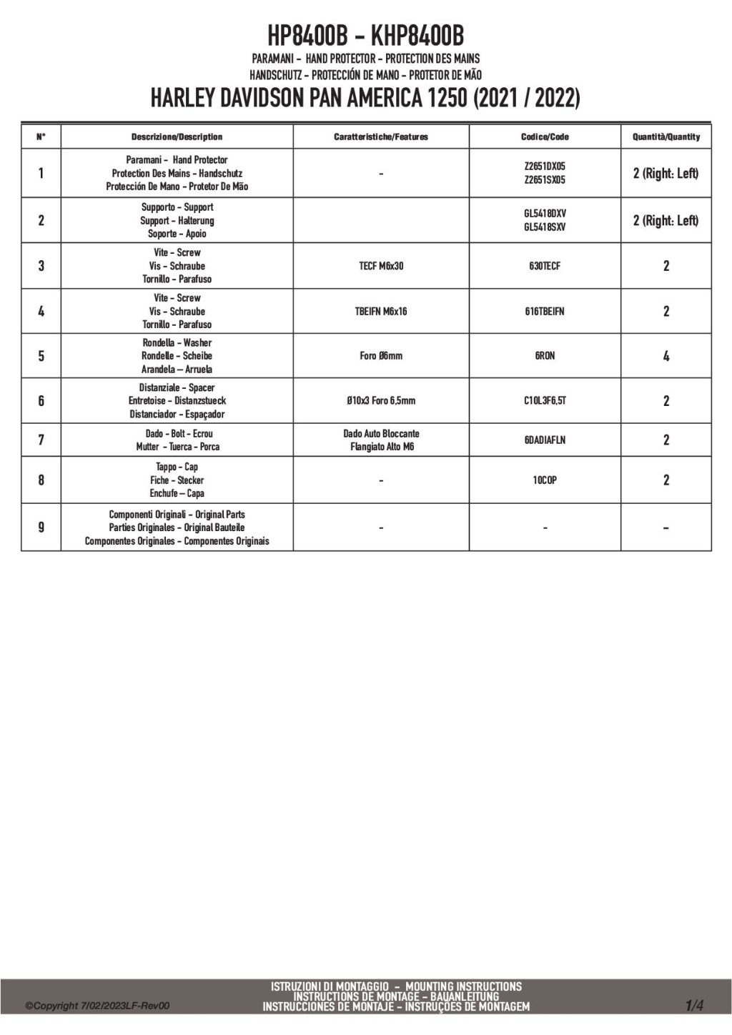 Kézvédő HP8400B HARLEY DAVIDSON Pan America 1250 (2021-2025) GIVI