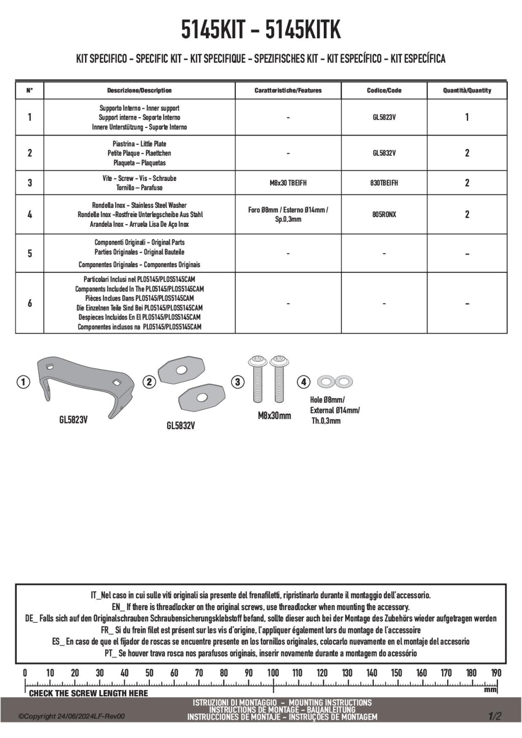 A GIVI 5145KIT a BMW F 900 GS (2024–2025) modellhez készült szerelőkészlet, amely lehetővé teszi a PLO5145MK / PLO5145CAM / PLOS5145CAM oldaldoboz-tartók felszerelését SR5145 hátsó tartó nélkül.