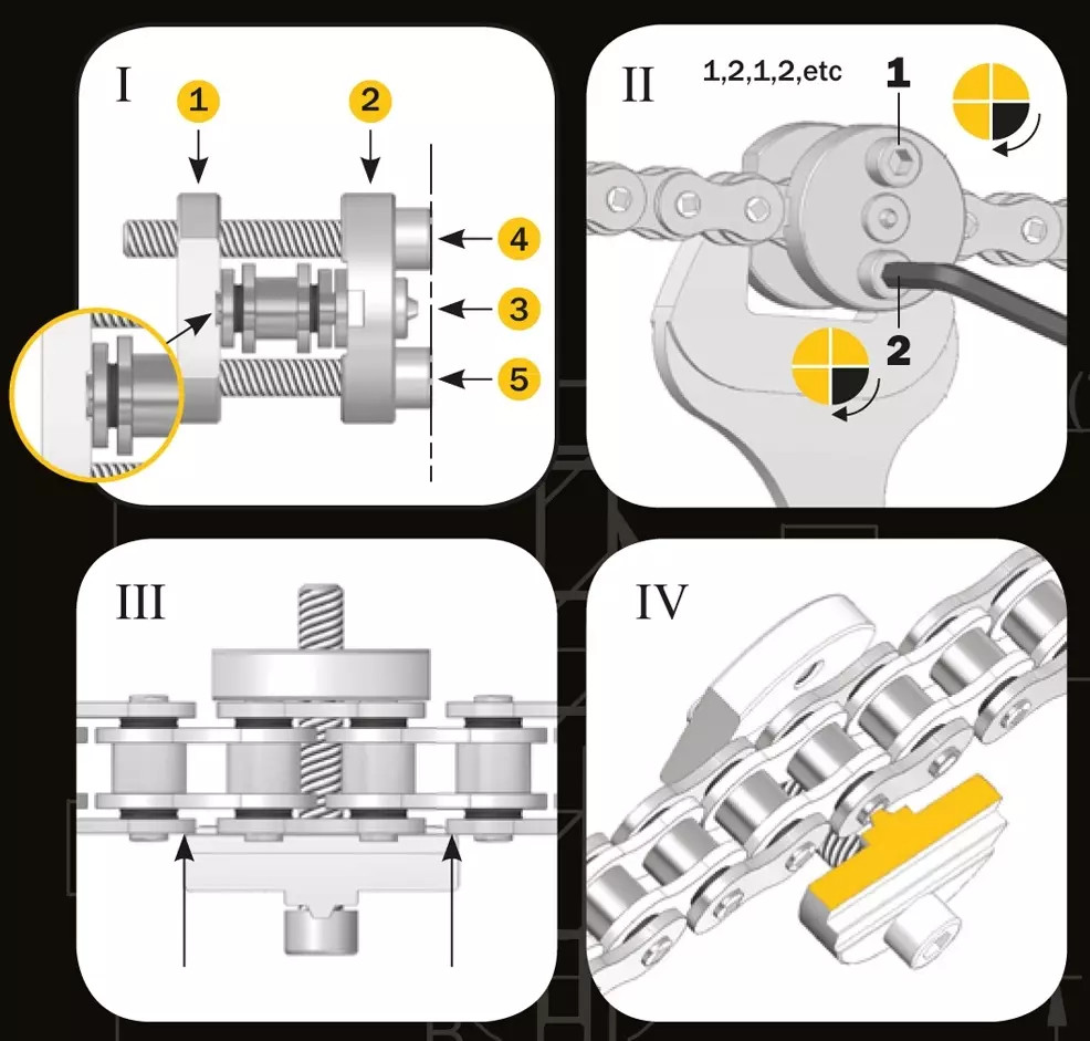 520-525-530 láncok összerakásához, nittelő szem préseléshez nélkülözhetetlen szerszám.