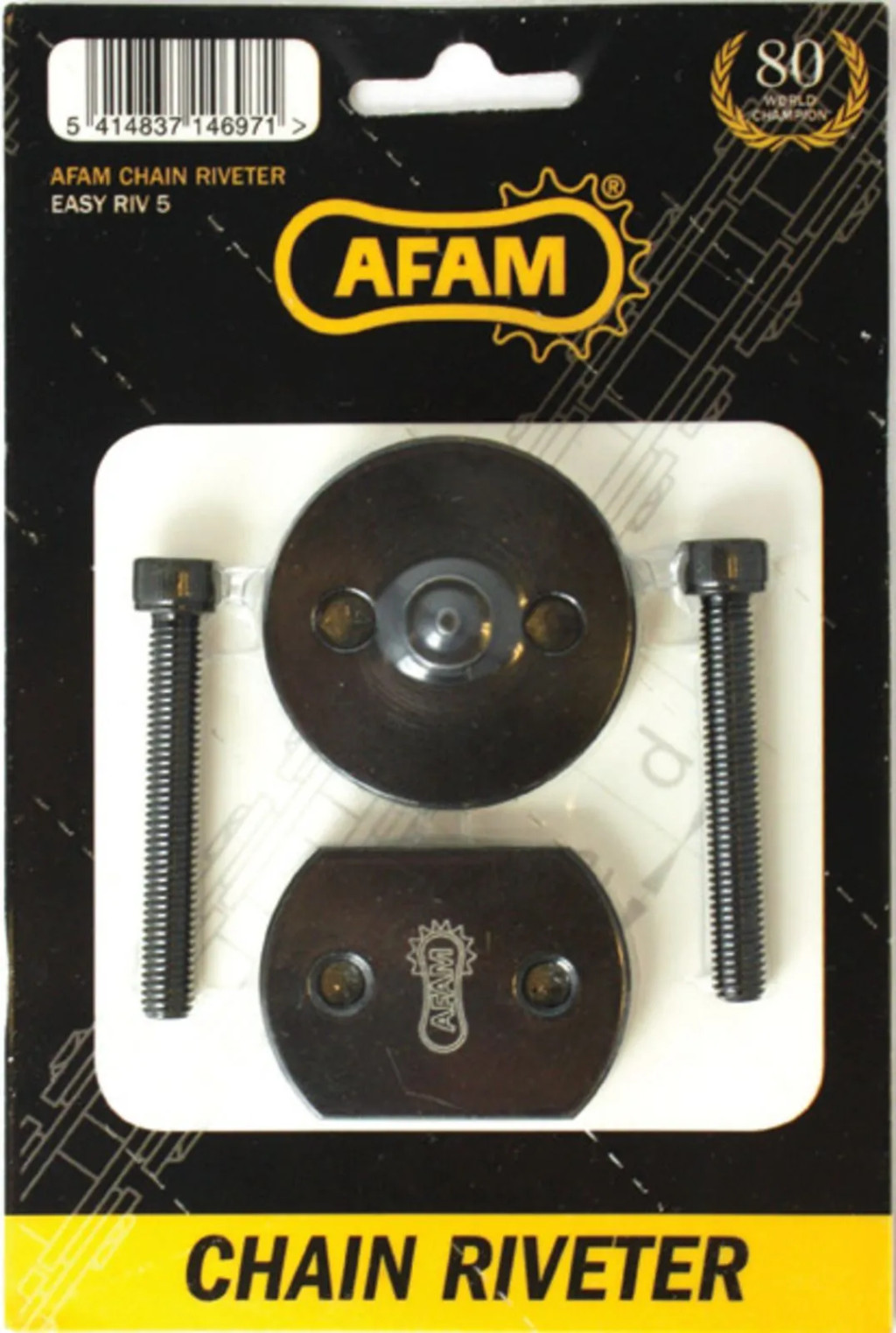 Az AFAM EASY RIV 5 egy kompakt és precíz láncszegecselő szerszám. A belga gyártó megbízhatóságát tükrözve, ez az eszköz kifejezetten a üreges szegecses láncok 5/8 colos végzáró láncszemeinek szegecselésére készült. Kezeli a 520, 525, 530 és 532 méretű láncokat, így ideális választás a legtöbb utcai, sport- és túramotorhoz.