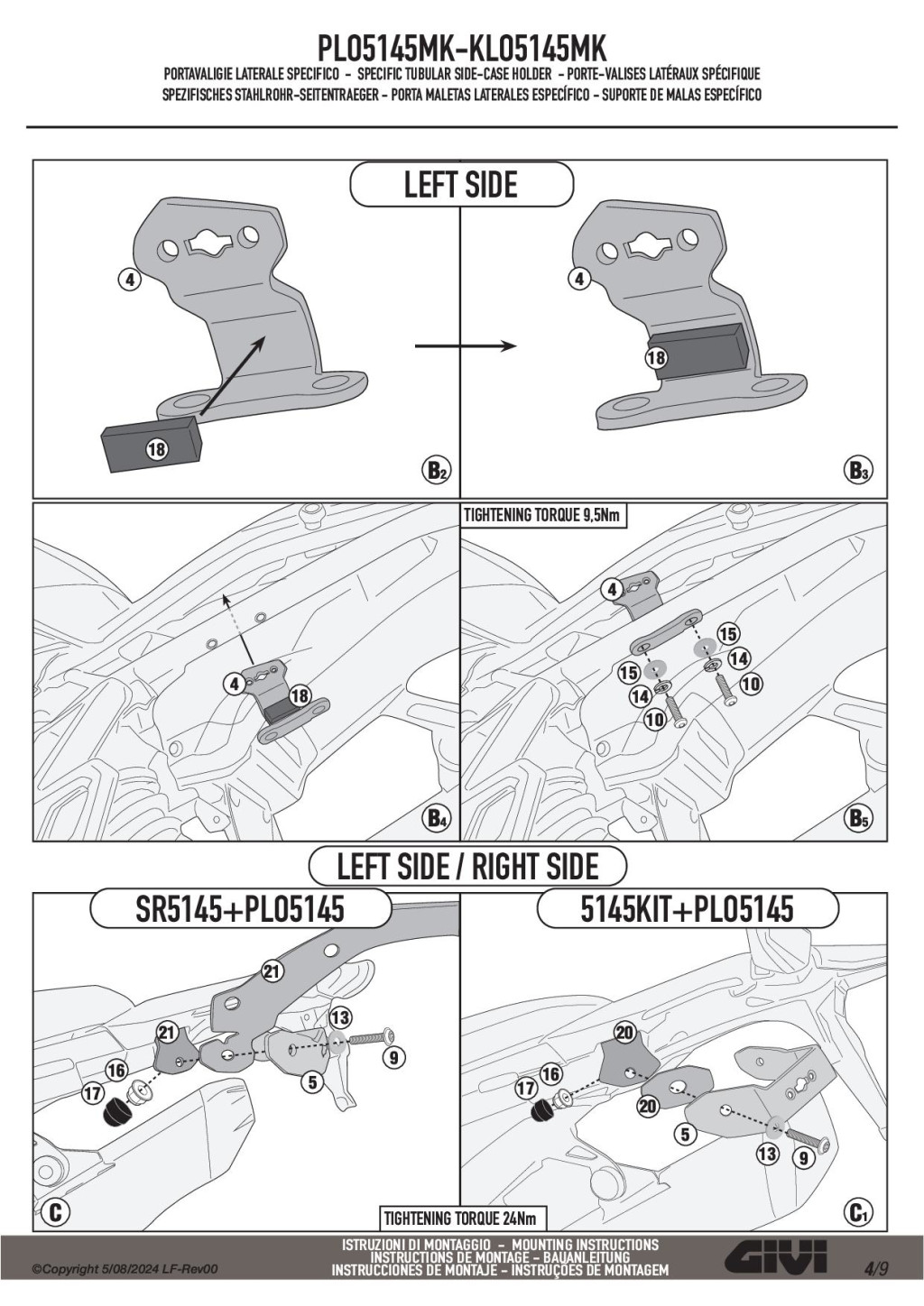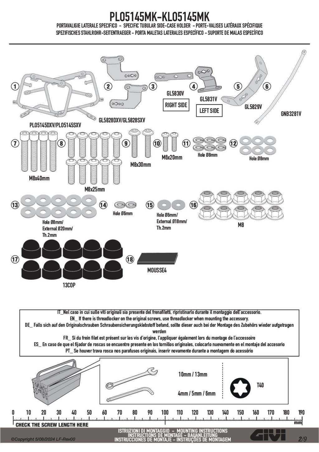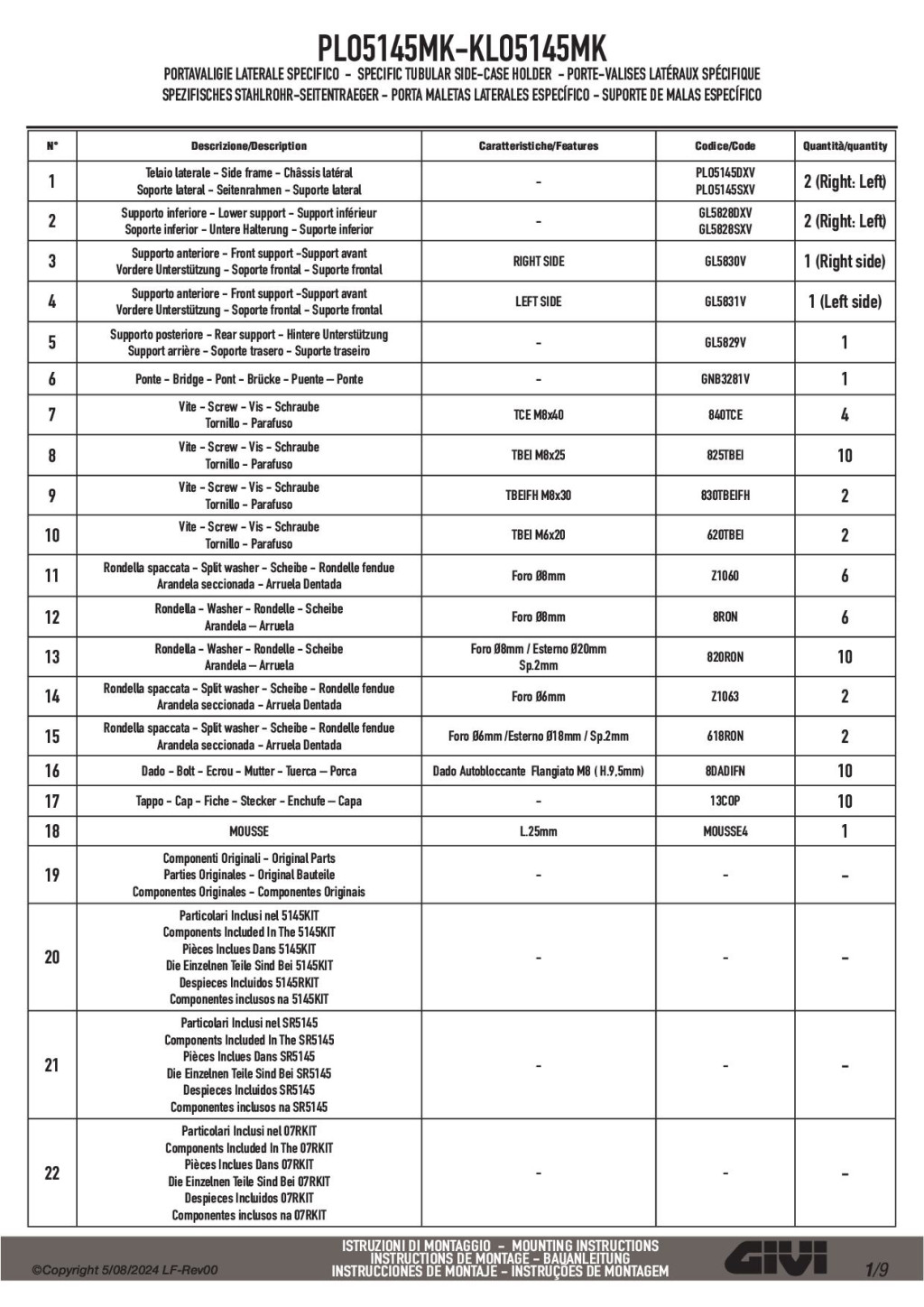 Ha nincs a motoron Givi vagy Kappa hátsó doboztartó, akkor a 5145KIT is szükséges, amely külön vásárolható.