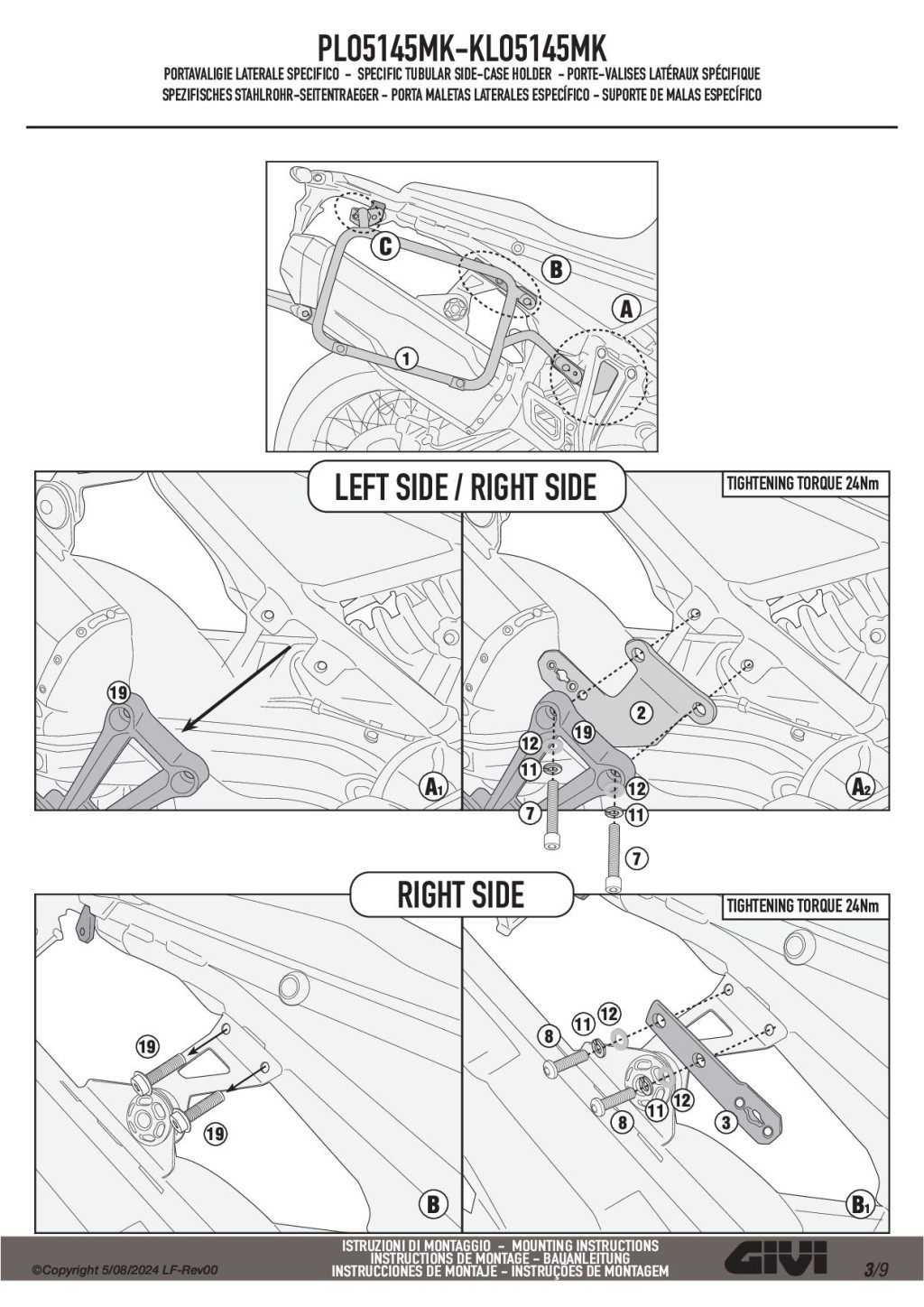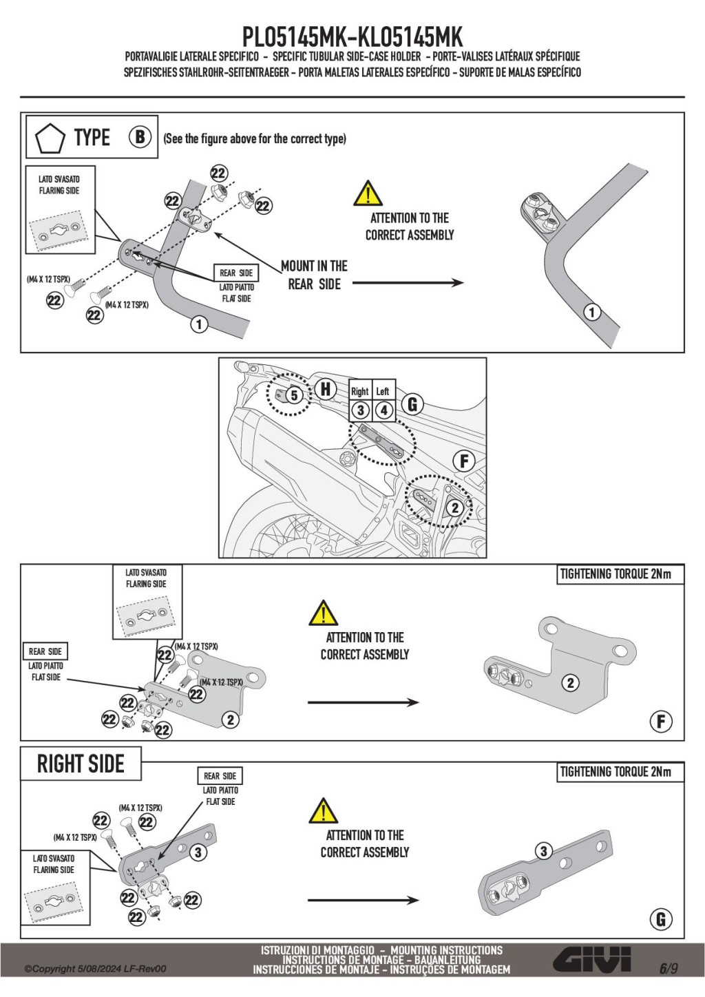 Ez az oldaldoboztartó csak akkor szerelhető fel a motorra, ha van már felszerelve Givi/ Kappa hátsó doboztartó is.