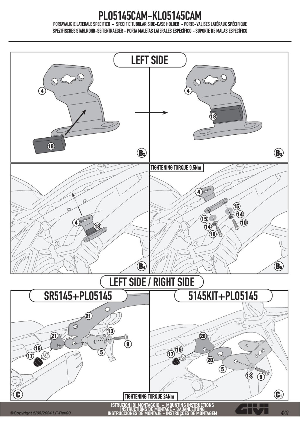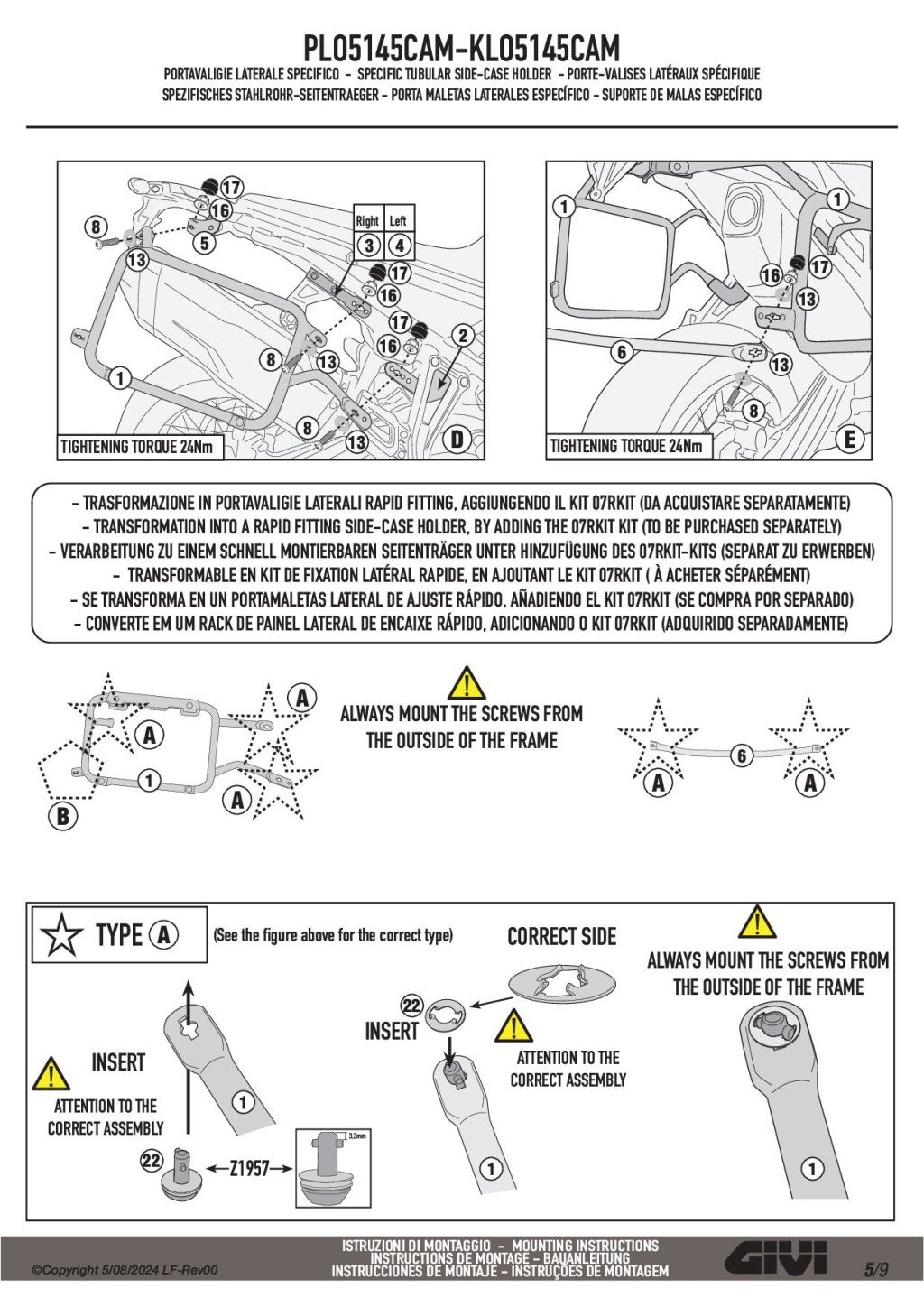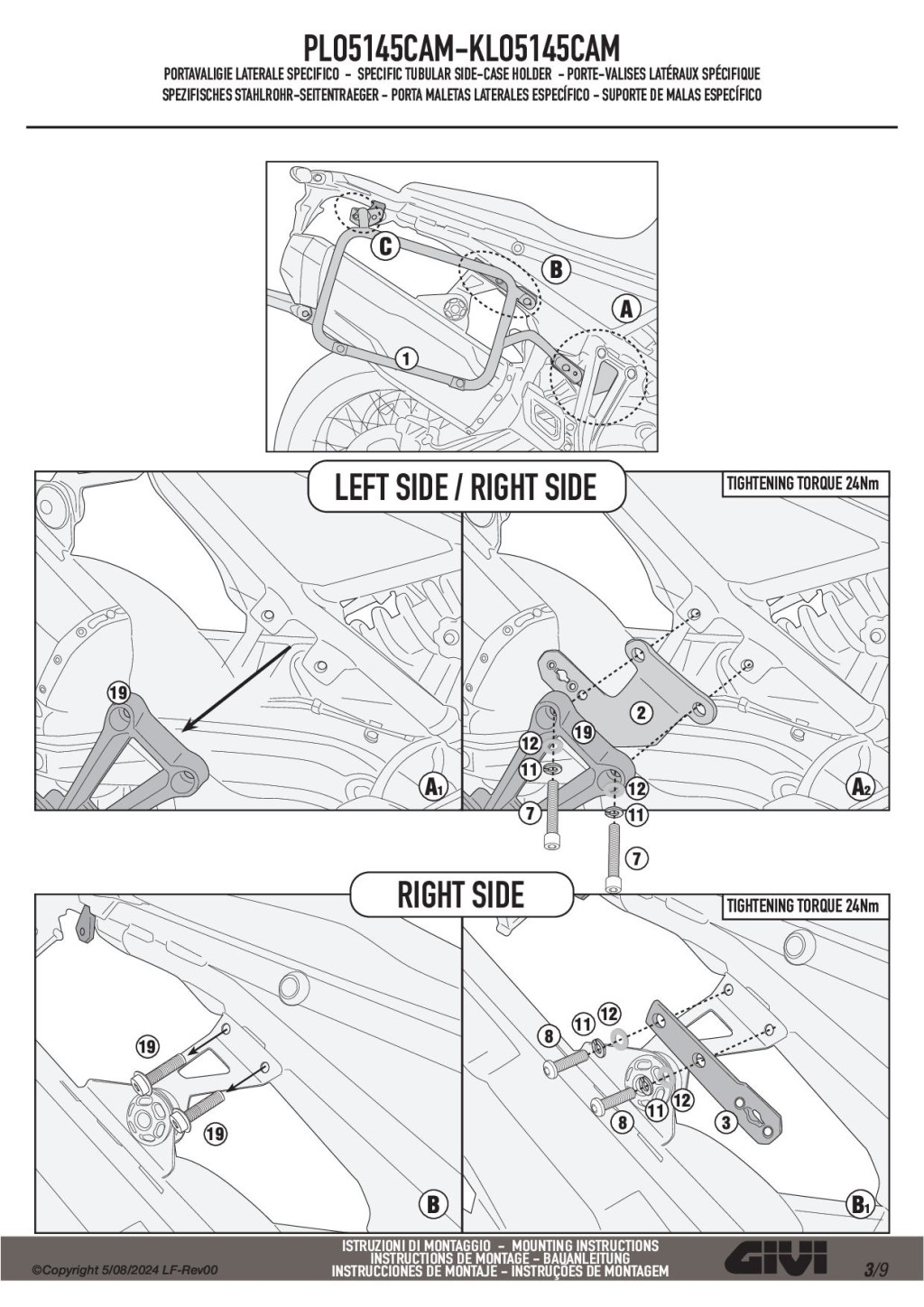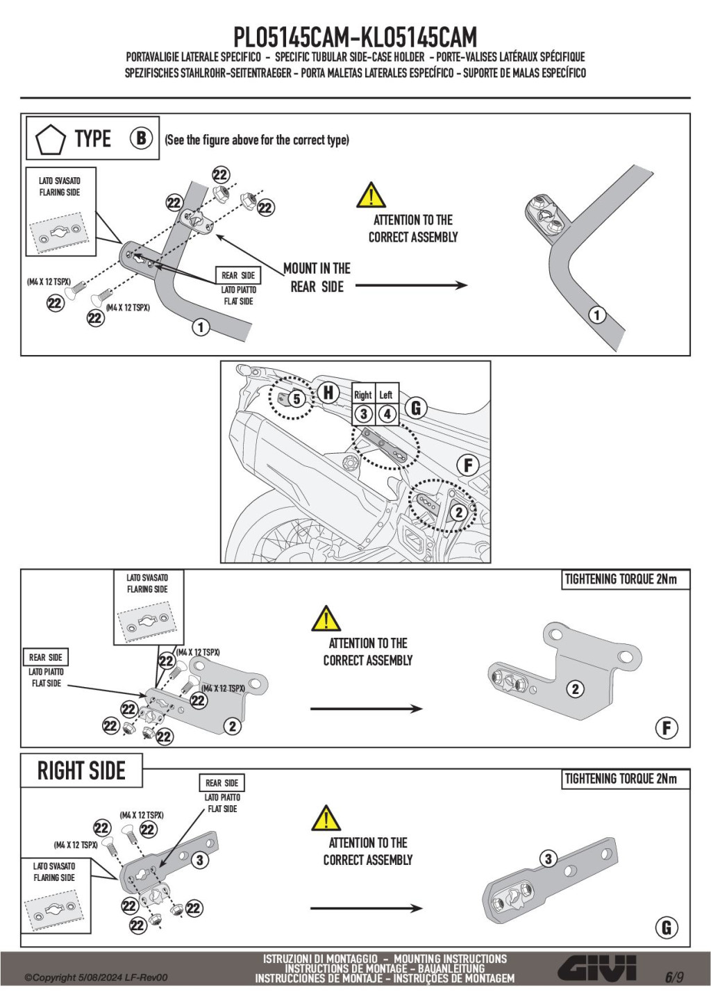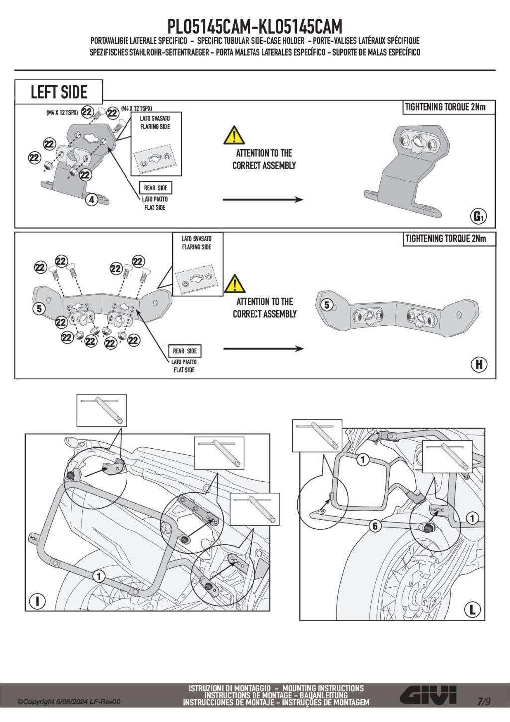 Ez az oldaldoboztartó csak akkor szerelhető fel a motorra, ha van már felszerelve Givi/ Kappa hátsó doboztartó is.