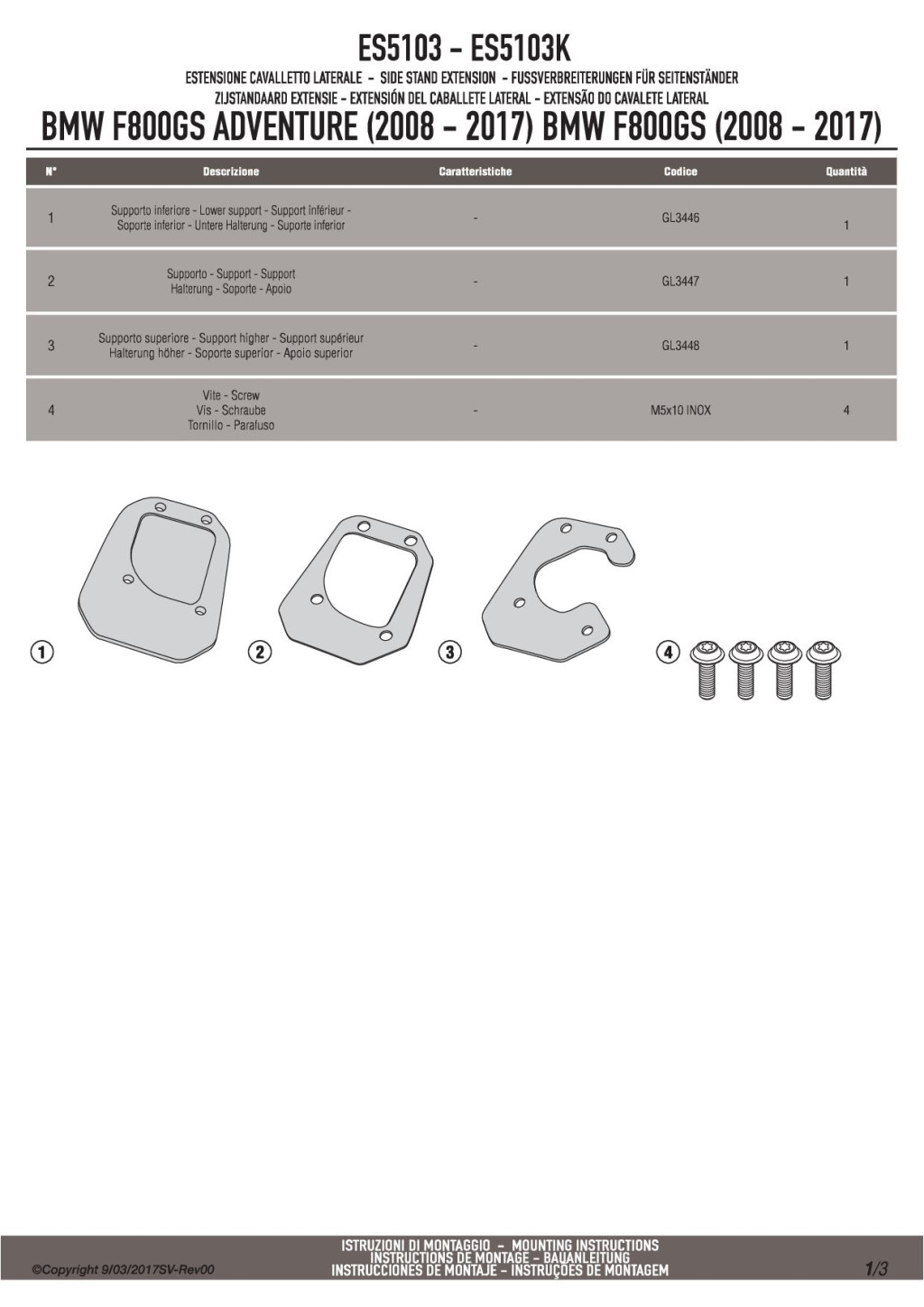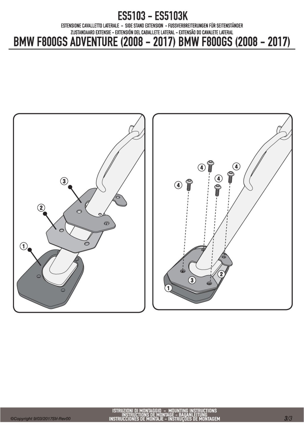 Oldalsztender talp BMW F 650 GS / F 800 GS (08-17) / F 800 GS Adventure (13-18) GIVI