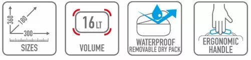 Vízállóság: roll-top záródás és kivehető vízálló belső táska (nagy esőnek is ellenáll)