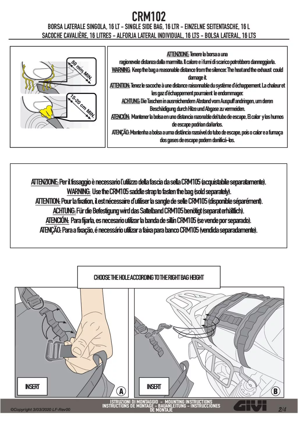 A felszereléshez CRM105 nyeregszíj szükséges, amely külön vásárolható meg.