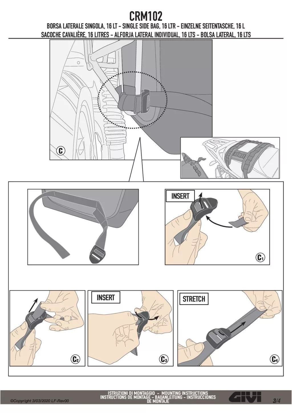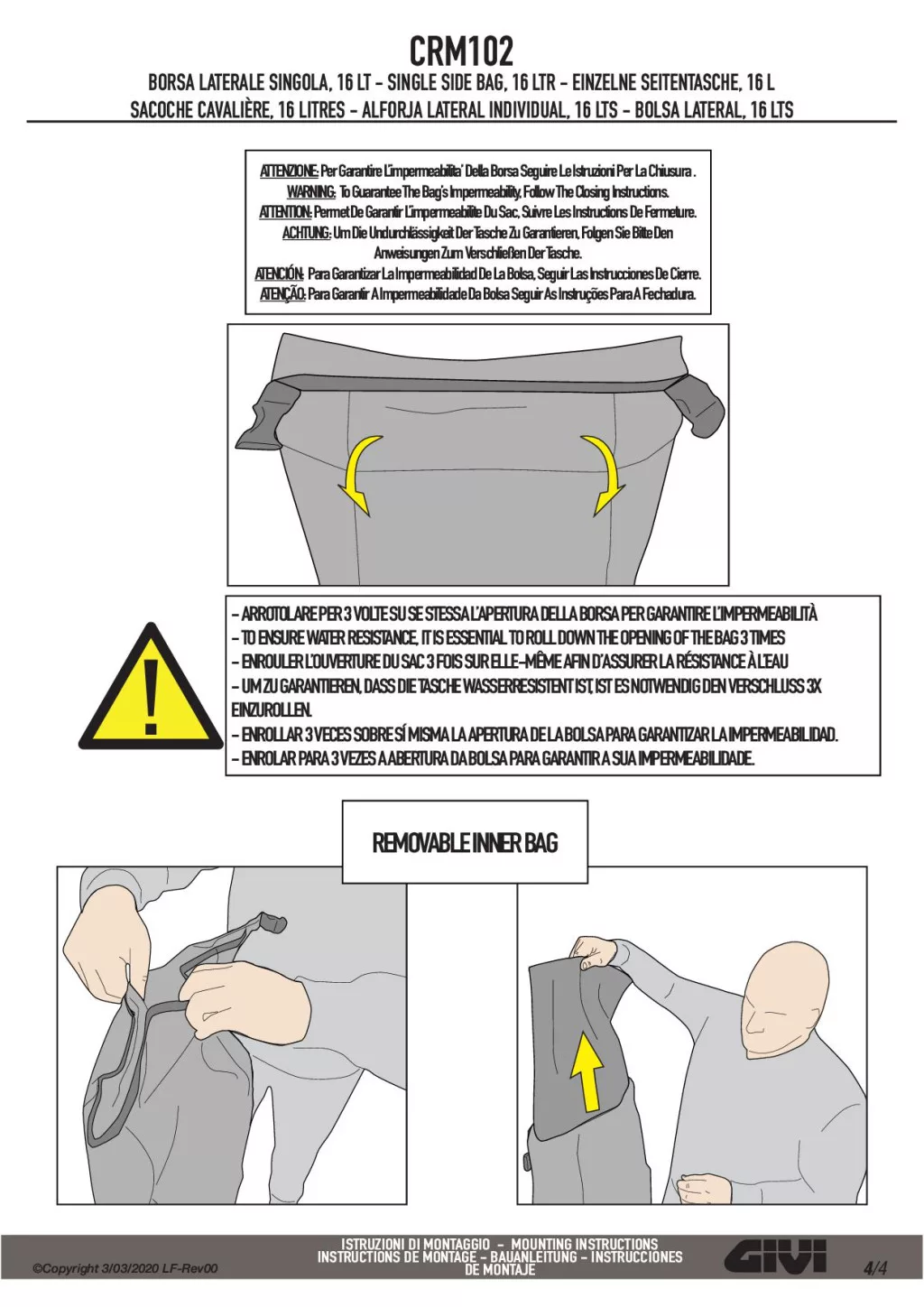 GIVI CRM102 oldaltáska – 16 l, vízálló belsővel, roll-top záródással. Klasszikus café racer és retró motorokra tervezve, a CRM105  nyeregszíjjal szerelhető fel, mely külön megvásárolható!