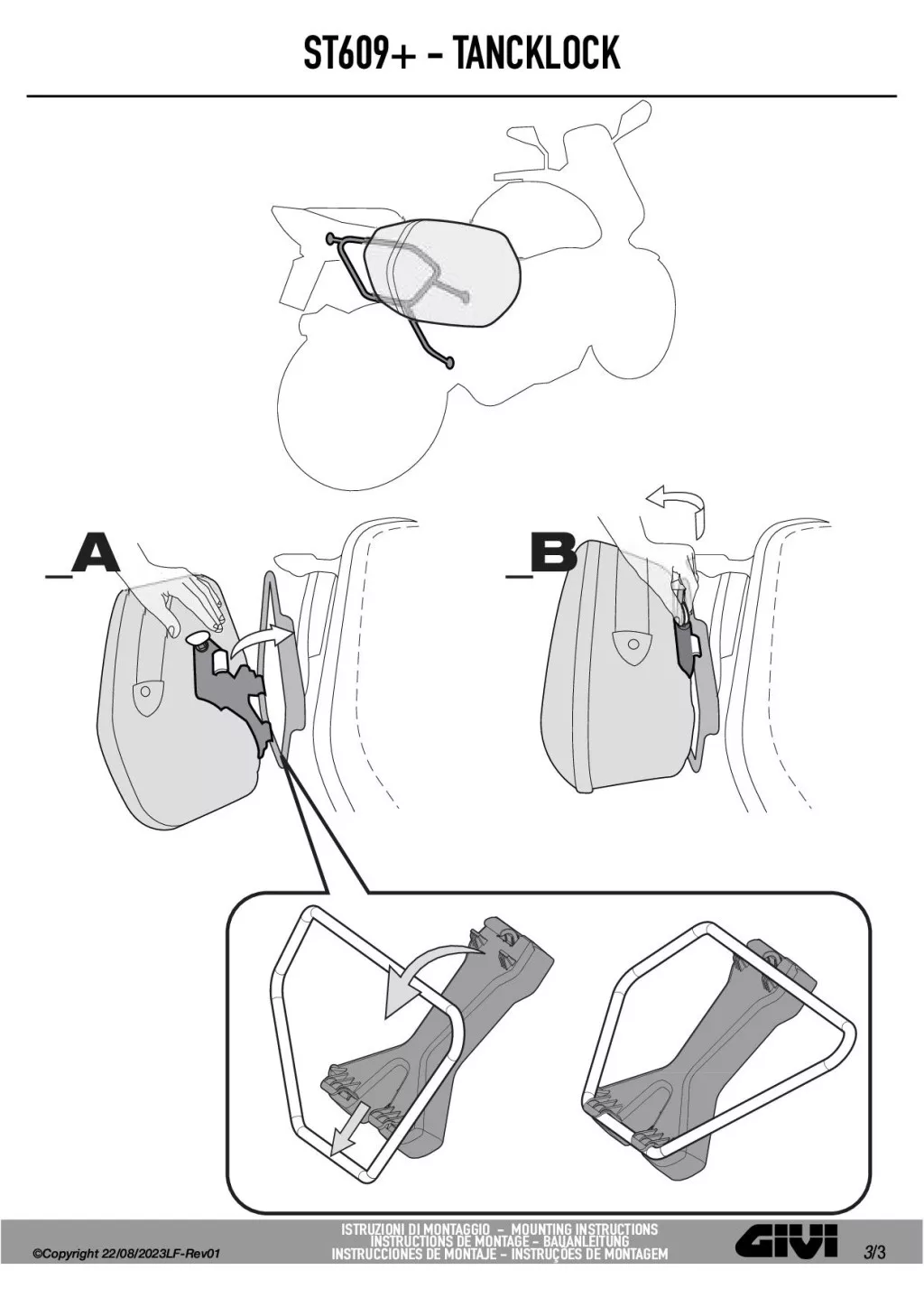 A ST609+ oldaltáskák a legtöbb népszerű motormárkához elérhető speciális GIVI tartókeretekkel (TE_ _ _) szerelhetők fel. Ellenőrizd, hogy elérhető-e a te motorodhoz- motortípus szerinti kereső KATT IDE!