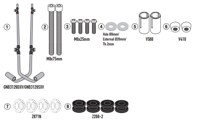 ️ Fontos: A csomag csak a rögzítő készletet tartalmazza! A GIVI 104A / 104S szélvédőt külön szükséges beszerezned.