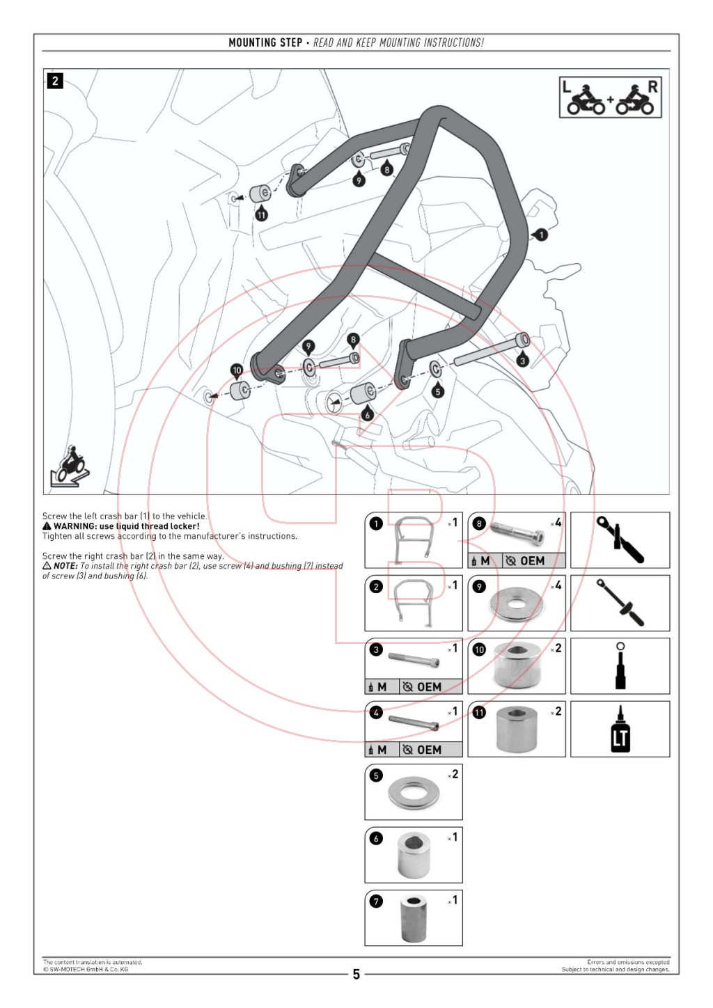 Az SW-Motech bukócső megbízható védelmet nyújt motorod számára, ha váratlan helyzet adódik. Robusztus, acélcsövekből készült, így hatékonyan óvja a blokkot és az érzékeny alkatrészeket esés vagy eldőlés esetén. A precízen tervezett kialakításnak köszönhetően tökéletesen illeszkedik a gyári felfogatási pontokhoz, így a szerelés egyszerű. A porfestett felület tartós, ellenáll az időjárásnak és a korróziónak, miközben sportosan elegáns megjelenést ad a motornak. Válaszd az SW-Motech bukócsövet, ha biztonságot, tartósságot és stílust szeretnél minden motoros kaland során.