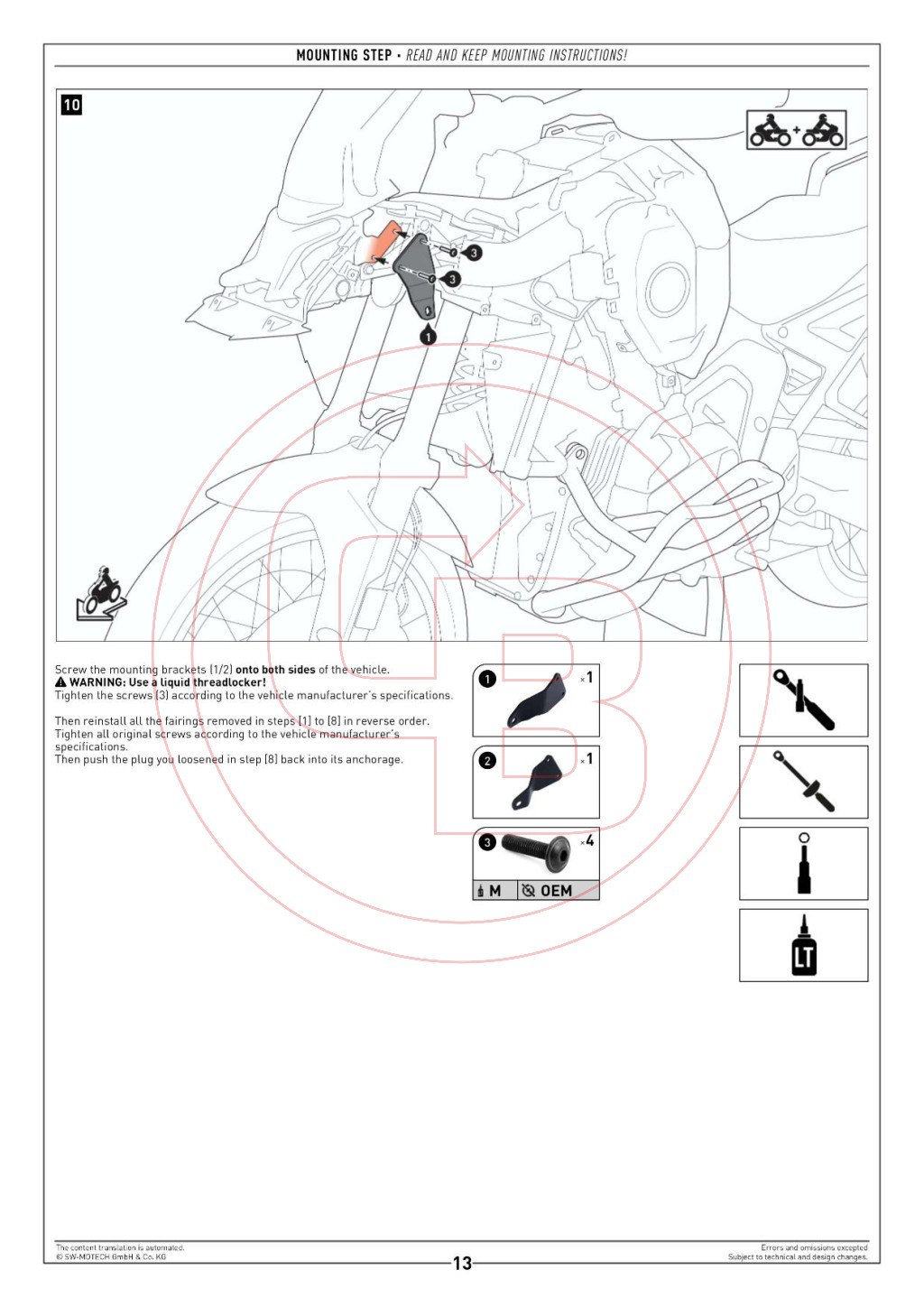 Az SW-Motech bukócső megbízható védelmet nyújt motorod számára, ha váratlan helyzet adódik. Robusztus, acélcsövekből készült, így hatékonyan óvja a blokkot és az érzékeny alkatrészeket esés vagy eldőlés esetén. A precízen tervezett kialakításnak köszönhetően tökéletesen illeszkedik a gyári felfogatási pontokhoz, így a szerelés egyszerű. A porfestett felület tartós, ellenáll az időjárásnak és a korróziónak, miközben sportosan elegáns megjelenést ad a motornak. Válaszd az SW-Motech bukócsövet, ha biztonságot, tartósságot és stílust szeretnél minden motoros kaland során.