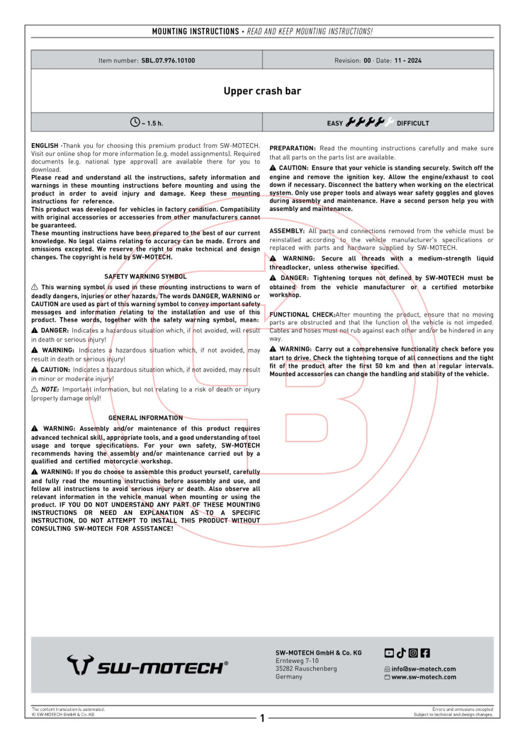 A bukócső megbízható védelmet nyújt a motor érzékeny alkatrészeinek. Az elem modell-specifikus kialakítású, így pontosan illeszkedik a gyári rögzítési pontokra – nincs szükség átalakításra. A tervezésnél figyelembe vették az optimális dőlésszög-szabadságot, így kanyarodás közben sem zavarja a motorozást.