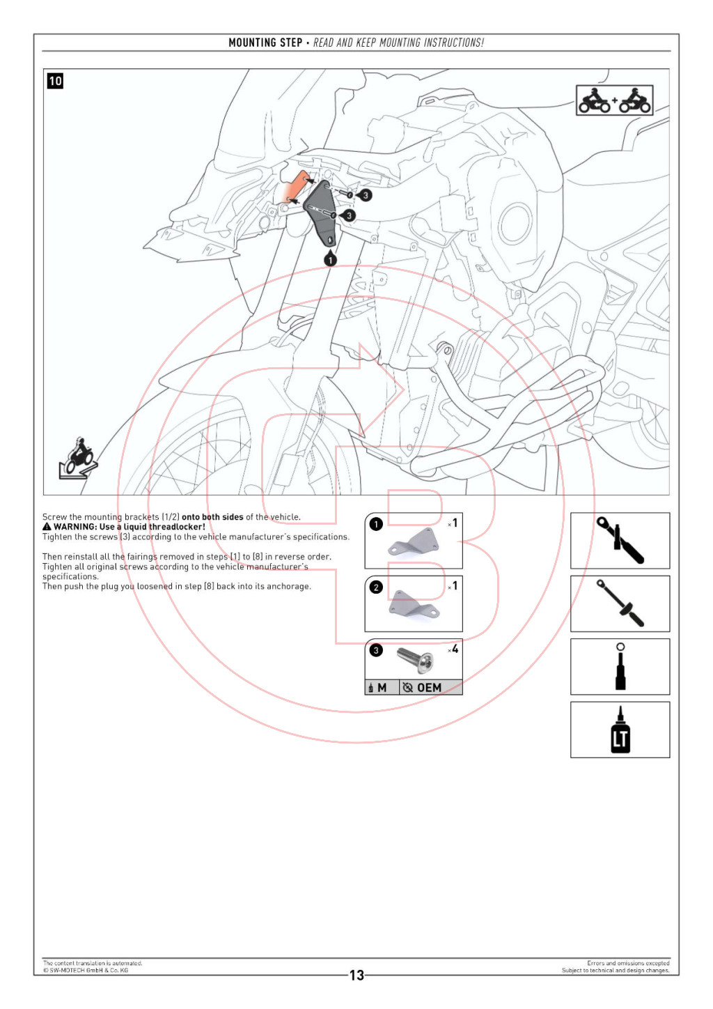 BMW R 1300 GS ADVENTURE modellekhez készült. A 27 mm átmérőjű acélcsőből kialakított szerkezet rendkívül stabil, ugyanakkor megőrzi a motor sportos arányait. A felületet időjárás- és korrózióálló, ezüst porfestés védi, amelyet a gyártó brünni üzemében modern eljárással visznek fel.