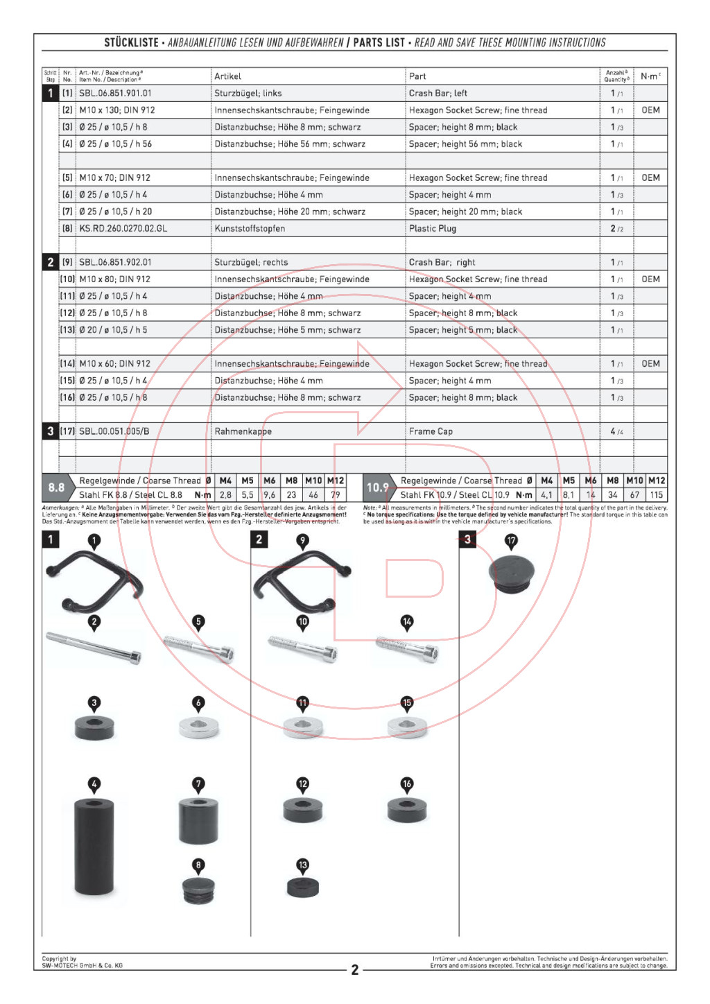 A készlet tartalmazza a bukócső mindkét oldalát, a szükséges szerelési anyagokat és a részletes útmutatót.