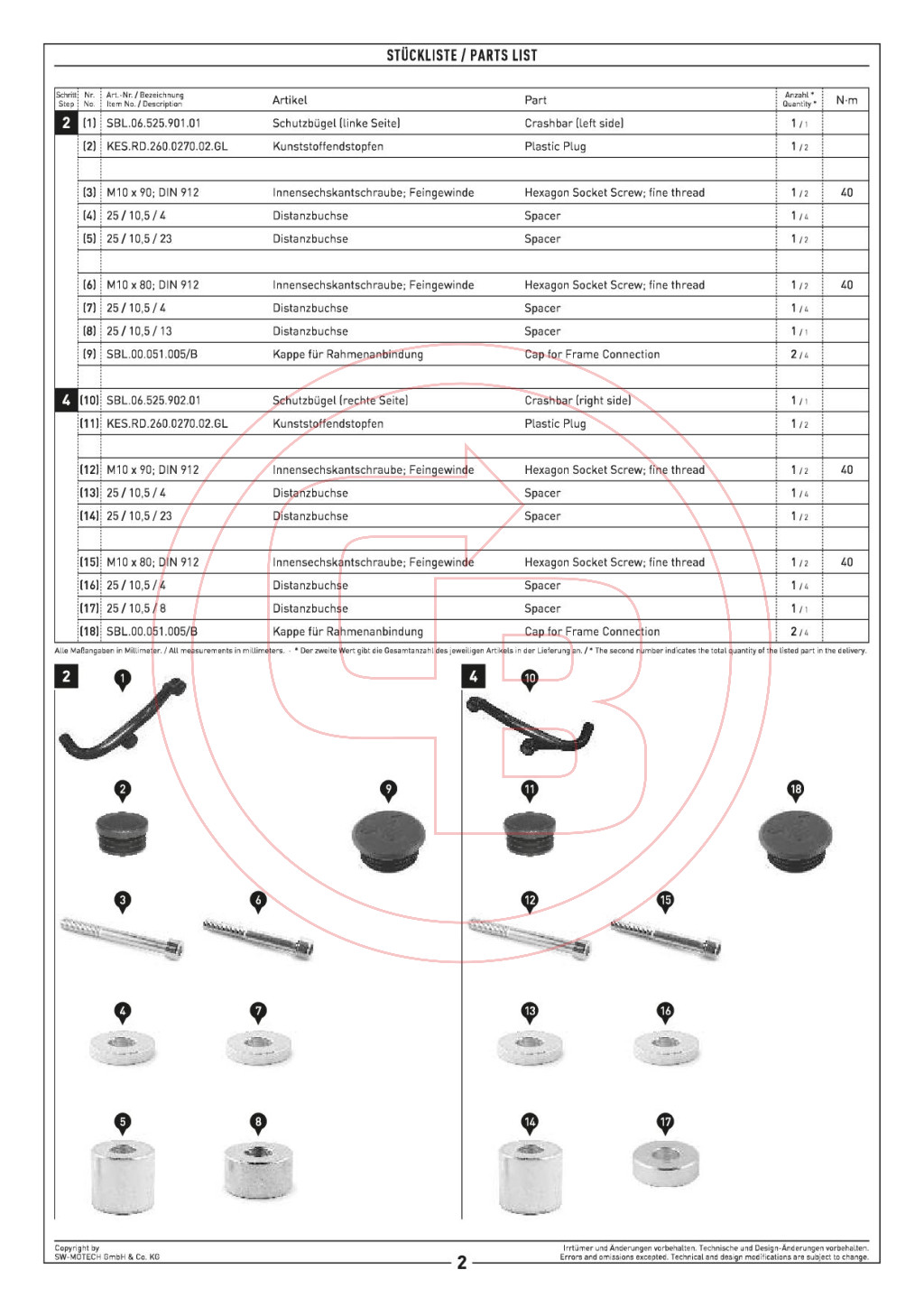 A készlet tartalmazza a bukócső mindkét oldalát, a szükséges szerelési anyagokat és a részletes útmutatót.