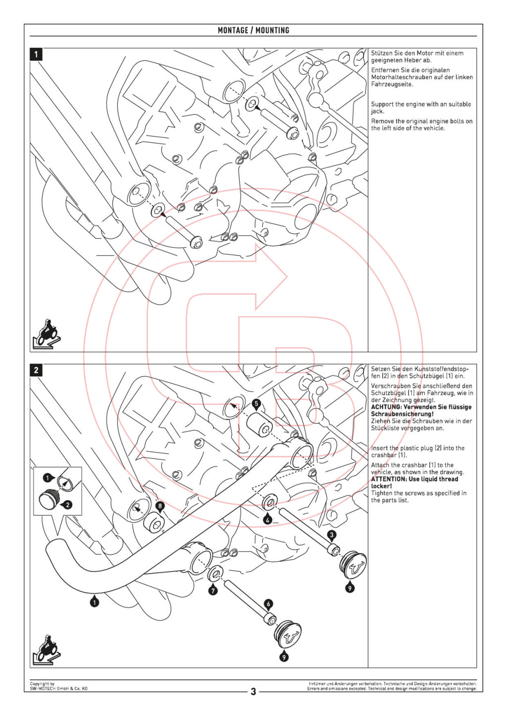Az SW-Motech bukócső megbízható védelmet nyújt motorod számára, ha váratlan helyzet adódik. Robusztus, acélcsövekből készült, így hatékonyan óvja a blokkot és az érzékeny alkatrészeket esés vagy eldőlés esetén. A precízen tervezett kialakításnak köszönhetően tökéletesen illeszkedik a gyári felfogatási pontokhoz, így a szerelés egyszerű. A porfestett felület tartós, ellenáll az időjárásnak és a korróziónak, miközben sportosan elegáns megjelenést ad a motornak. Válaszd az SW-Motech bukócsövet, ha biztonságot, tartósságot és stílust szeretnél minden motoros kaland során.