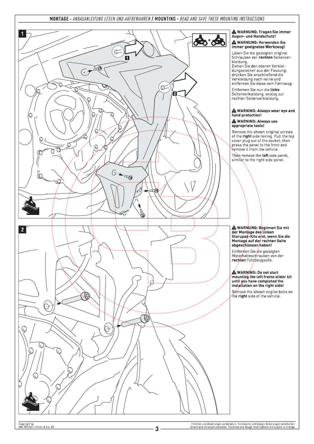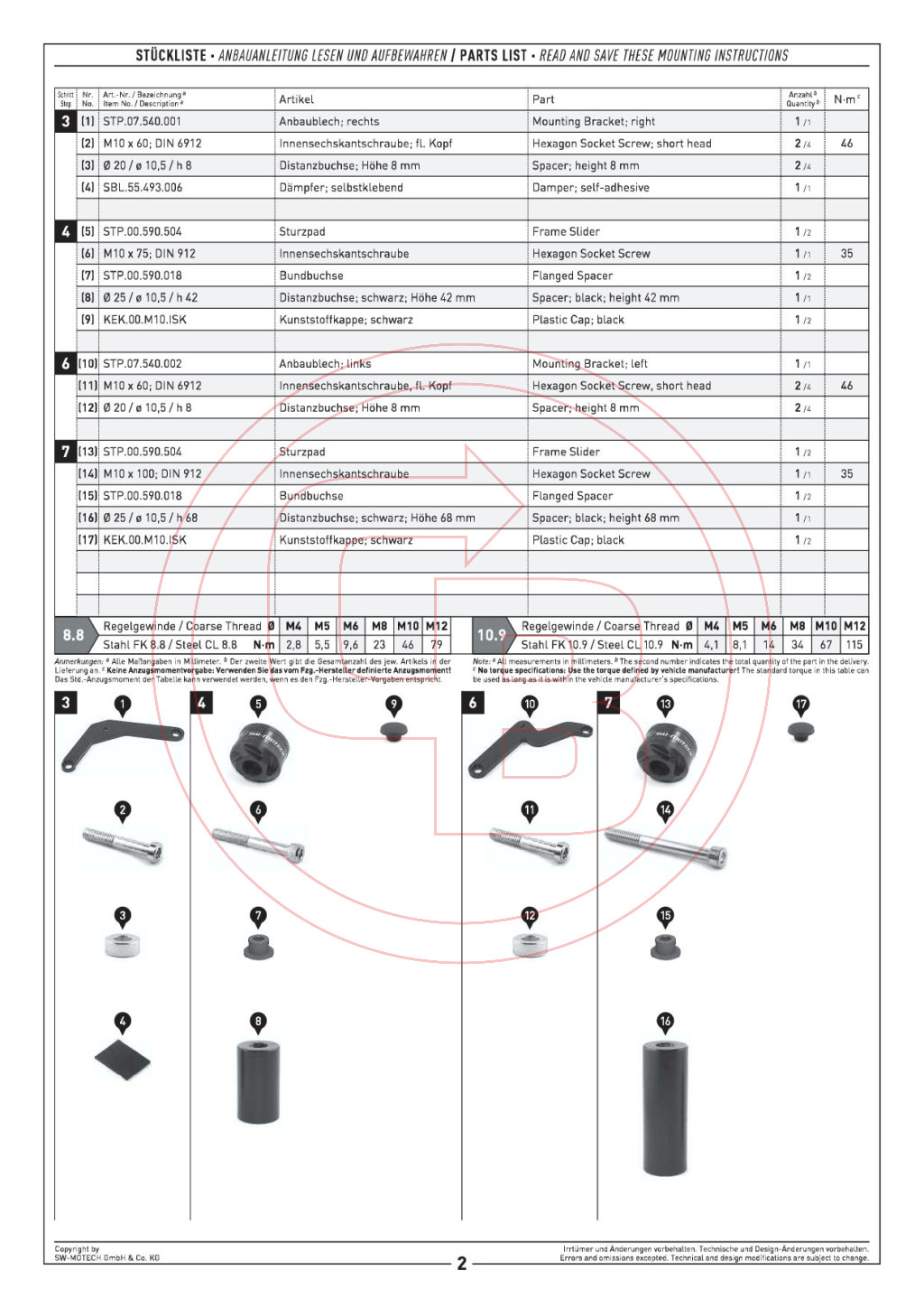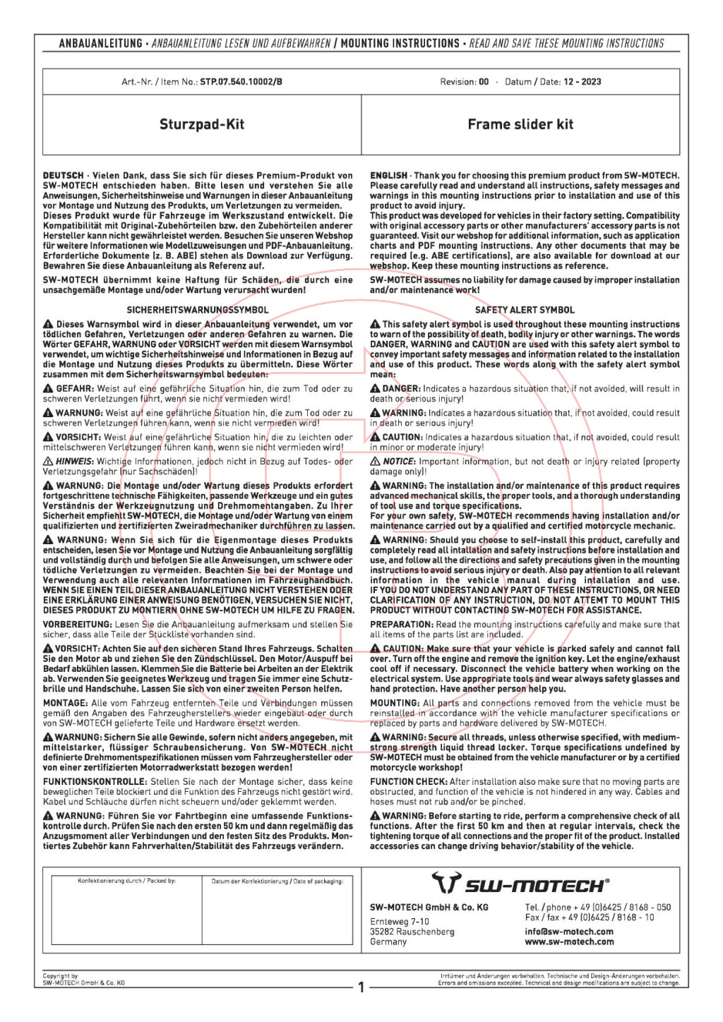 BMW S 1000 R (2013-2016) típusokra készült, és közvetlenül a gyári rögzítési pontokra szerelhető. Nem igényel vázátalakítást, így tiszta és biztonságos megoldást kínál. A tartóelemek CNC-mart alumíniumból készültek, amely kiemelkedő szilárdságot és stabilitást biztosít, a csúszóbetétek pedig kopásálló poliamid anyagból készülnek. Előnyük, hogy baleset vagy csúszás után külön is cserélhetők.