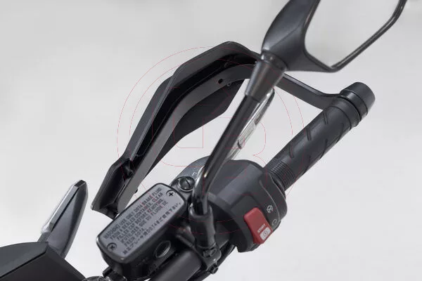 A kézvédő egy modell-specifikus, porfestett alumínium tartókonzolhoz rögzül, amely nagy szilárdságot biztosít, és egy esetleges esés során is óvja a kormányvezérlést. A zárt forma oldalról is takarást ad, így a karok és a kéz extra biztonságban vannak.