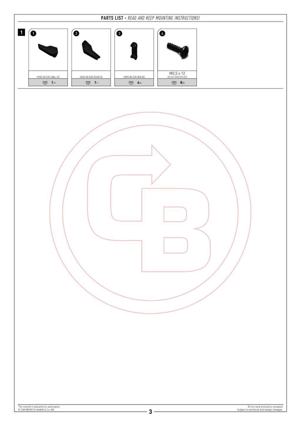A tartókeret nem kompatibilis más SW-Motech kézvédőkkel (pl. KOBRA vagy BBSTORM).