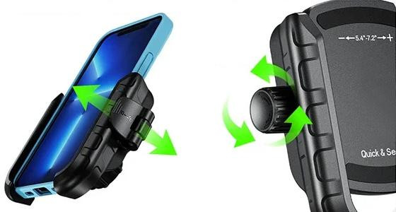A tartó fő elemei alumíniumból, a csavarok és vezetősínek pedig rozsdamentes acélból készültek – ez garantálja a hosszú élettartamot és a rezgésálló stabilitást. Az állítható befogási tartomány 64–89 mm, így a legtöbb okostelefon – akár nagy kijelzős modellek is – könnyedén elfér benne.